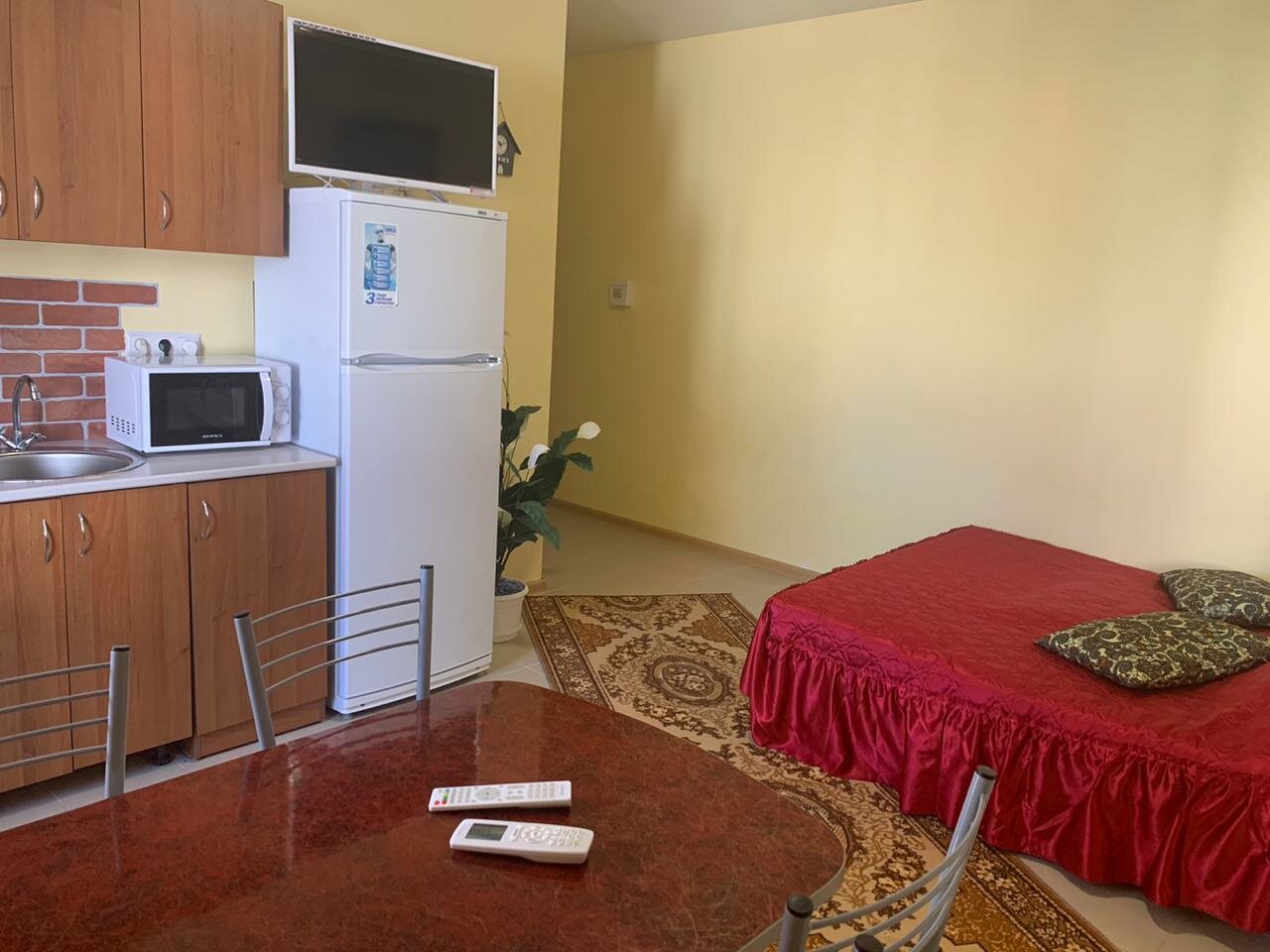 Замечательное место, в номере реально есть всё даже средства от косаров. С водой проблем не было. Киндеры в каждой комнате кухня и плита и холодильник и микроволновка и приборы столовые и почуда и и и так можно перечислять до бесконечности до моря метров 400 пляж отличный