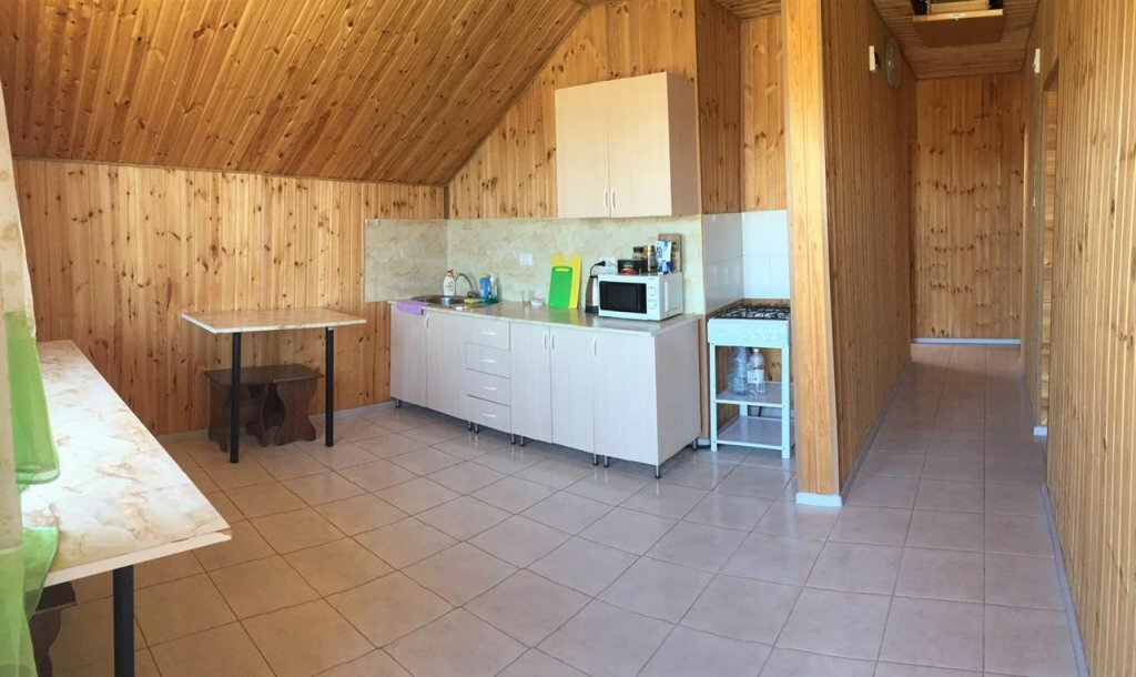 Удобное расположение- пляж совсем недалеко. У отеля есть парковка, что очень удобно. За свои деньги номера шикарные. Наш номер был на последнем этаже, внутри номера отделка деревом, что создает приятный, уютный запах. Много спальных мест- односпальная кровать, двуспальная кровать, кресло-кровать и диван. На кухне газовая плита, чайник, холодильник, столовые приборы и посуда — есть все, что нужно. Душевая и туалет в номере. Можно также сушить вещи на веревках снаружи, есть даже прищепки. Очень благодарны хозяевам за возможность заселиться раньше 14 часов. Будем еще в Голубицкой- остановимся только у вас!