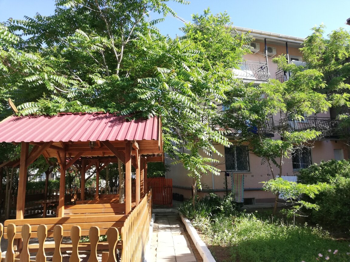 Пригласили друзья, мы приехали позже , на пару дней. Я очень не хотела сначала, думала, что ничего интересного там нет.. оказалось все очень даже цивильно.. море рядом, пляж в пару минутах от гостиницы, чистый и благоустроенный, много развлечений для детей и взрослых. Для бюджетного отдыха отлично.. гостиница понравилась, все необходимое есть, чисто, уютно. Во дворе беседки, можно отдельно накрыть стол и сидеть на свежем воздухе. Территория закрытая от посторонних людей. Персонал очень вежливый. Правда есть недочёт с Вай фаем, он практически не работает.. благо, что нам было не до интернета , а так не помешало бы устранить этот момент Еще на 4 этаже электро плита, еле работает.. нам особо она была не нужна, один раз ребёнок попросил макароны , так они варилась минут 40. Потому что плита почти не греет. А так в остальном все понравилось. Будем приезжать