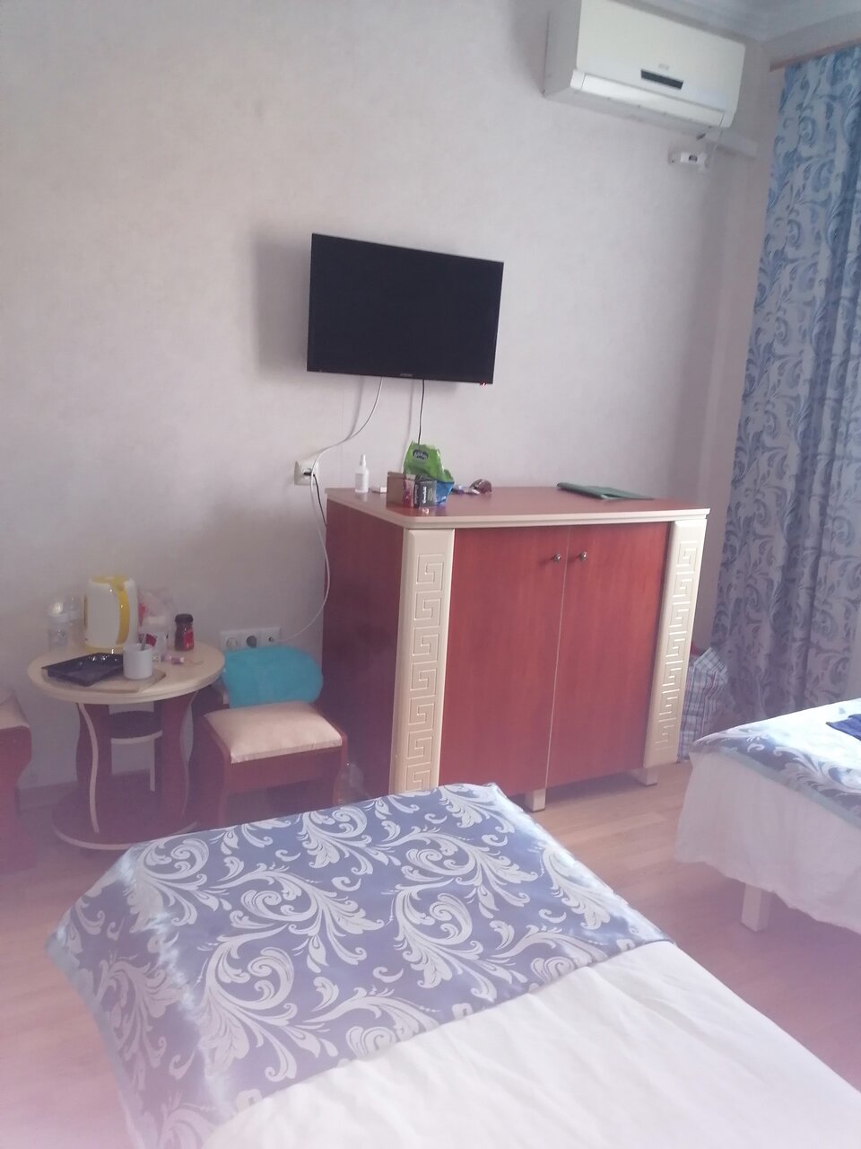 Обслуживание хорошее,горничная всегда на связи.В номере чисто.Персонал адекватный,вежливый,всегда поможет в решении любых вопросов.Расположение отличное,сто метров от моря примерно.Из удобств в номере все есть, кондиционер телевизор,простецкая посуда,душ,вайфай.