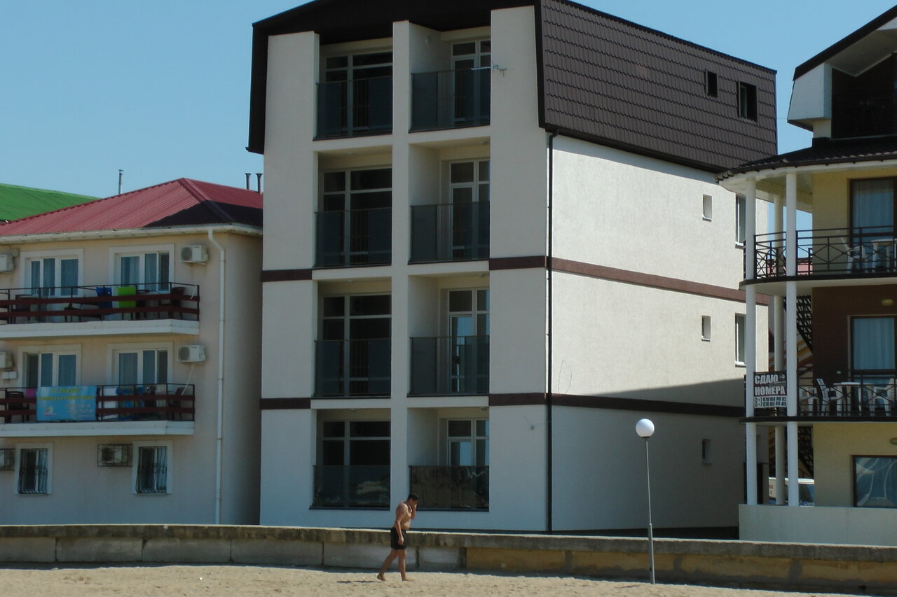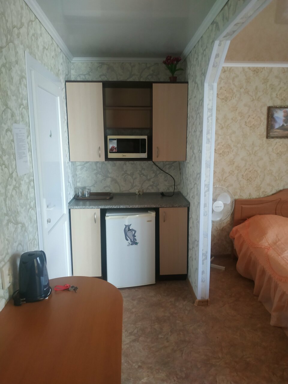 Пятерку не поставил,чтобы не вызвать возмущения многозвездочных обитатателей .Для меня критерии простые-чисто,наличие кондея,холодильника,душа,удобство номера близкое расположение к морю.Тут все это есть.Плюс телевизор который я не смотрю,мультварка,чайник,фумигатор,набор посуды с кухонными принадлежностямм Номер раздел на три помещения,санузел с душем на входе,кухня ,комната для сна.В кухне есть еще диван,так что можно жить втроем,а разложив вчетвером.Соседи с детьми так жили.Сверхизысков нет.Пляж в одной минуте ходьбы.Многие готовят сами,внизу есть плитка на две комфорки.Рядом много аналогичных домов,кафе,аптек и магазинчиков.Пляж мелкая галька ,вперемежку с песком.Сход в воду конечно не такой пологий как в Анапе,вода чистая,но не кристально.Водорослей и медуз нет.Под вечер частенько волна,можно побарахтаться.Минутах в 20-25 озеро с лечебной грязью.Тихий спокойных отдых.