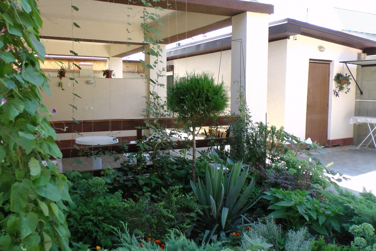 Все просто супер! Очень добрая хозяйка, не навязывает свое мнение, не ходит по пятам за постояльцами. В номерах чисто, аккуратно, горничные молодцы. Номера разной ценовой категории, каждый сможет найти по своим возможностям. Очень красивая придворовая территории, вся в зелени, свой мини-фонтан, качели садовые, детский батут. Практически у всех номеров есть свои зоны (мини — беседки) на улице. Минусов нет вообще!!!!!