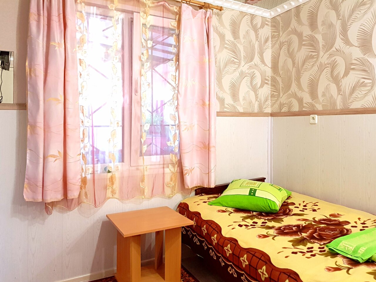 Отдыхали в июне этого года. Хозяева очень приятные люди. Встретили на станции, довезли, по дороге всё обьяснили, где пляж, где магазины. И в дальнейшем, если возникали какие-то вопросы, всегда можно было смело рассчитывать на их помощь. В номере чистота, хозяйничать приятно, как у себя дома, посуда вся есть, даже с избытком. Номер у нас был со своей кухней, санузлом и верандой, удобный и уютный. Предусмотрены даже такие мелочи, как фумигаторы и подставка для телефона, всё для удобства отдыхающих. Постельное белье всё как новое, были теплые одеяла, и даже коврики для пляжа. Во дворе были качели для ребенка, большая качель, мангал, много веревок для сушки белья. Пляж в 10 минутах ходьбы. В магазины мы ходили на территории базы отдыха Прибой, очень удобно по пути с пляжа. Сам пляж достаточно чистый, малолюдный. Обратный трансфер у нас был до Евпатории, за небольшие деньги довезли от места до места. В общем нам всё очень понравилось, соотношение цена-качество отличное.
