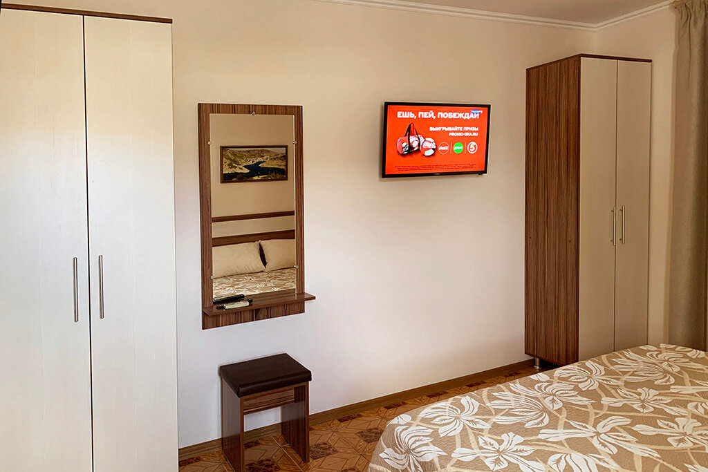 Отдыхали в августе 2023 года, номер стандарт улучшенный на втором этаже с балконом, Гостевой дом расположен очень удачно, в самом центре базы отдыха, рынок, магазины, кафе до всего рукой подать) До пляжа метров 50. В номере ооочень чисто, мебель новая, постельное белье, полотенца, все в отличном состоянии..вот даже придраться не к чему) Есть все для комфортного отдыха. За 9 дней проживания один раз убирались в номере, меняли постельное белье и полотенца, что редкость в гостевых домах. Татьяна Васильевна очень добродушная хозяйка, всегда у нее везде чисто и уютно. Спасибо за прекрасный отдых. Рекомендую!