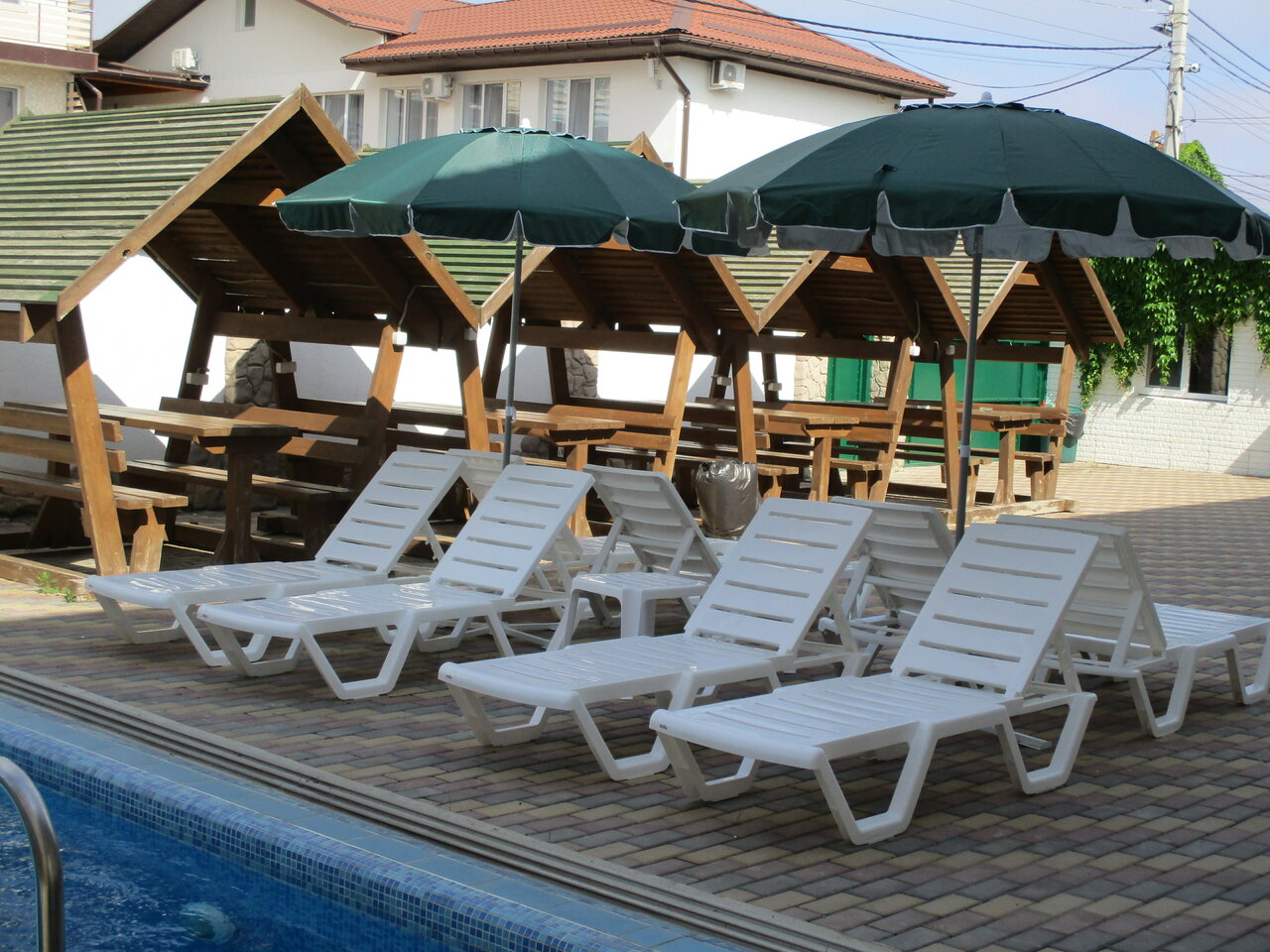 Гостиница находится слегка в стороне от шумных мест — для меня это огромный плюс! Ну люблю я спокойный отдых! Номера просторные. В номере есть все, что необходимо: кондиционер, холодильник, телевизор. Кровать удобная, дополнительное место — поставили раскладушку с ламелями. На территории есть кухня с посудой, плита, микроволновкой. Небольшие беседки для посиделок и мангал. И, конечно, классный бассейн! Парковка — на улице возле забора. Единственный минус — ‘подуставшая’ сантехника. Но это настолько несущественный минус, что не стоит снятия звезды. Очень приятные и добродушные хозяева. Рекомендую!