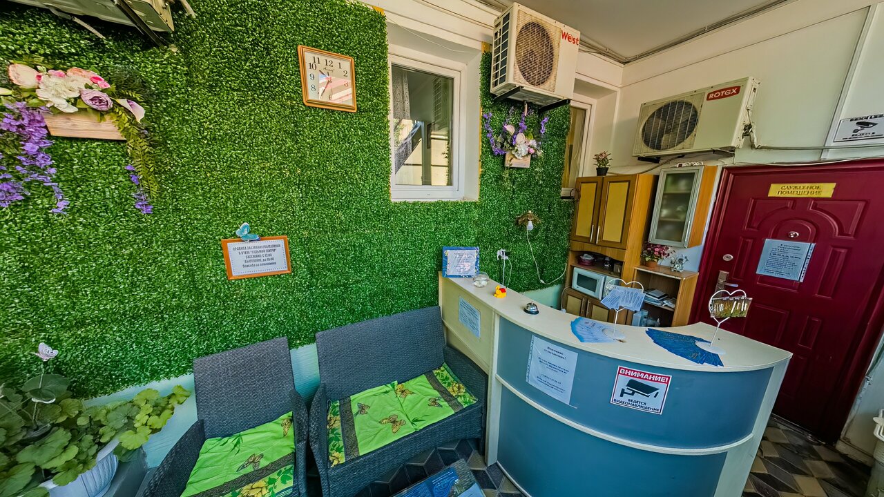 - Тихий отдых, несмотря на близость к центру.; Кулеры с водой в жару.; Хорошая инфраструктура рядом (кафе, магазины, набережная).; Доступность для людей с ограниченными возможностями (пандусы, специализированная кровать).; Близость к морю (3–5 минут пешком).