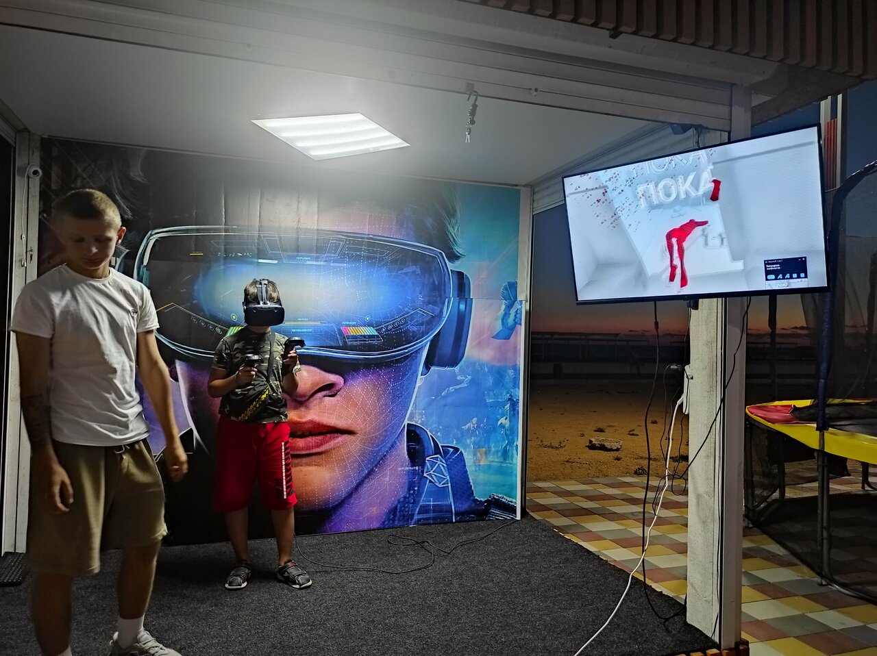 - Волейбольная площадка рядом с баром (летит песок).