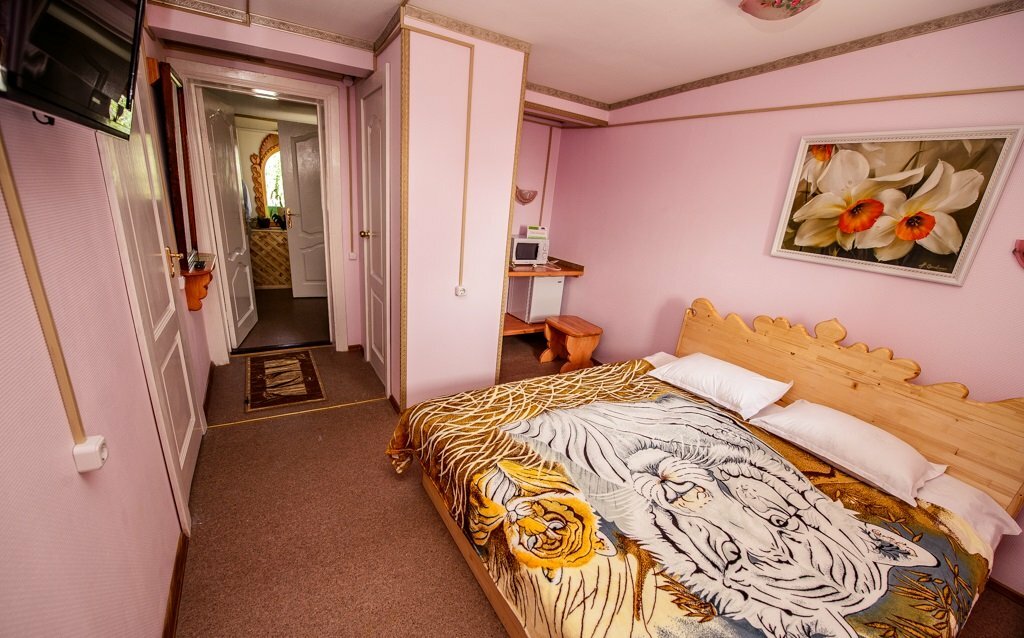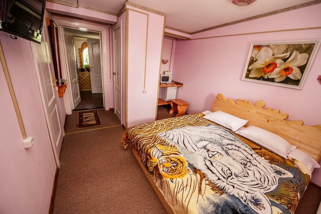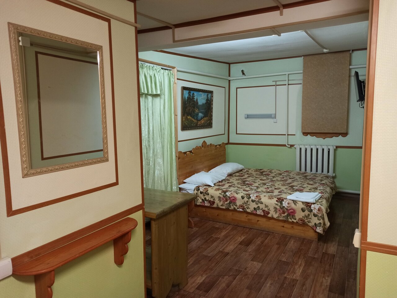 Хорошая гостиница. Рекомендую. В номерах микроволновка, чайник, холодильник. Рядом магазины, река. При необходимости можно заказать баню на дровах. Отлично.