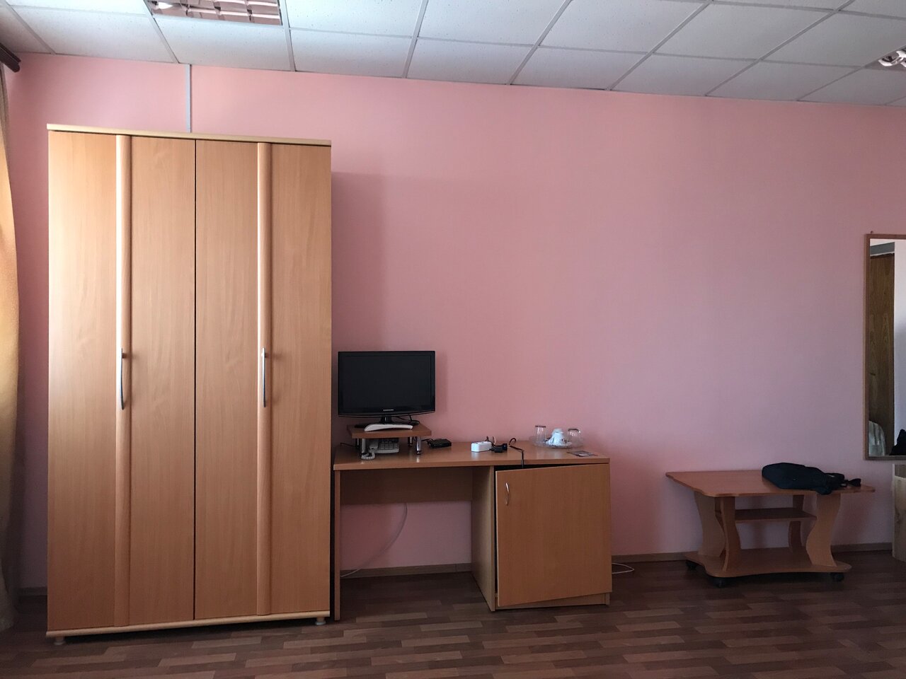 - Нет кулера, чайника, тапочек.