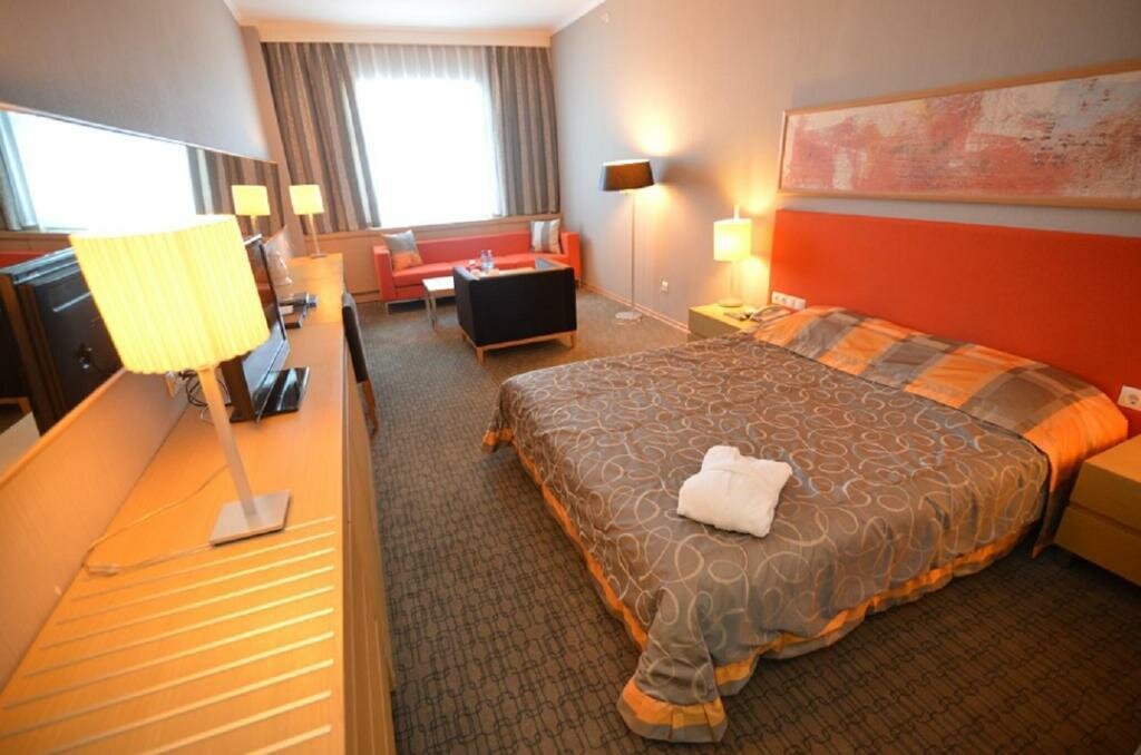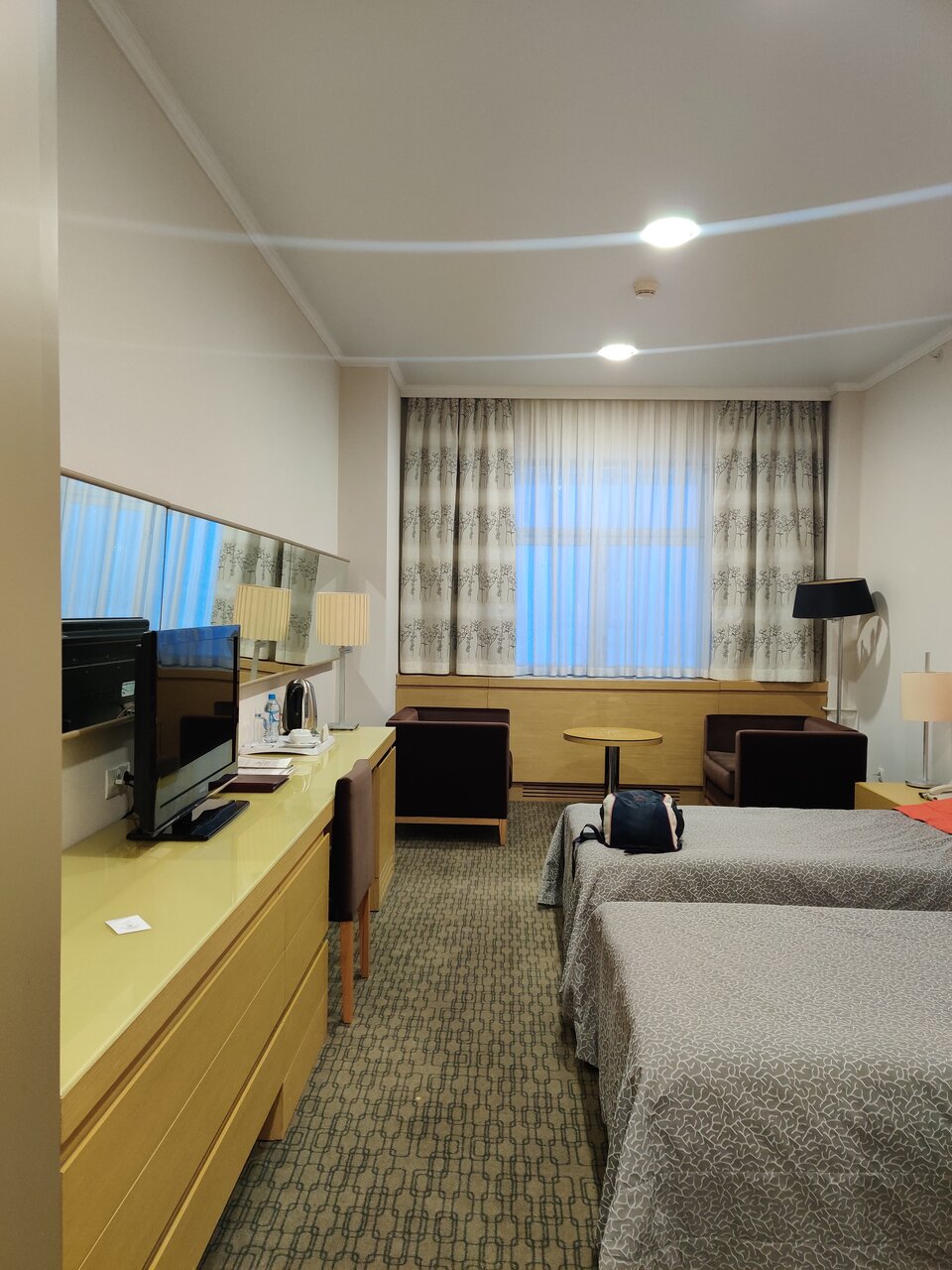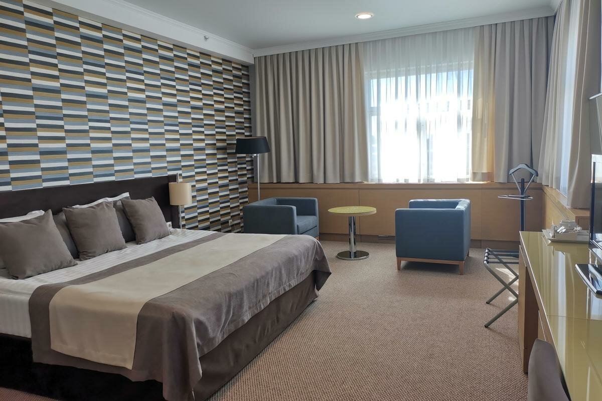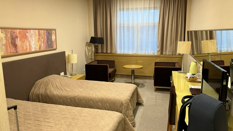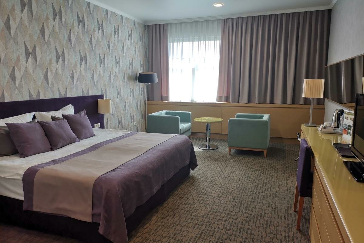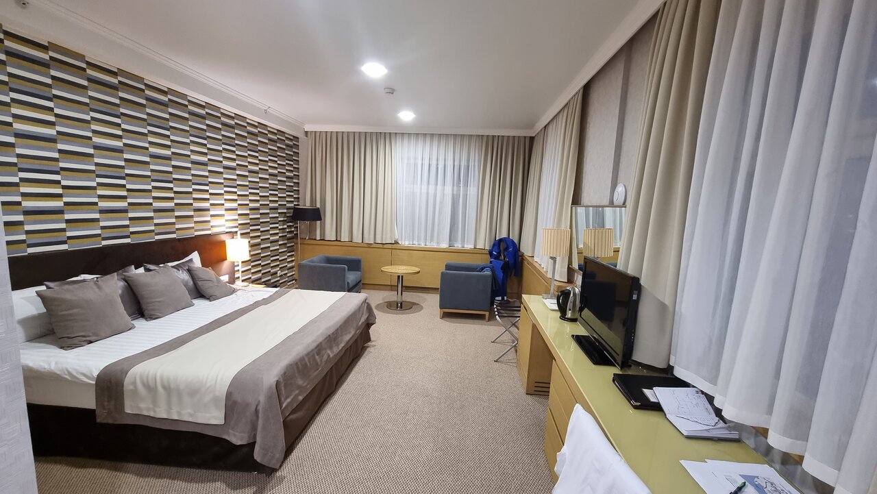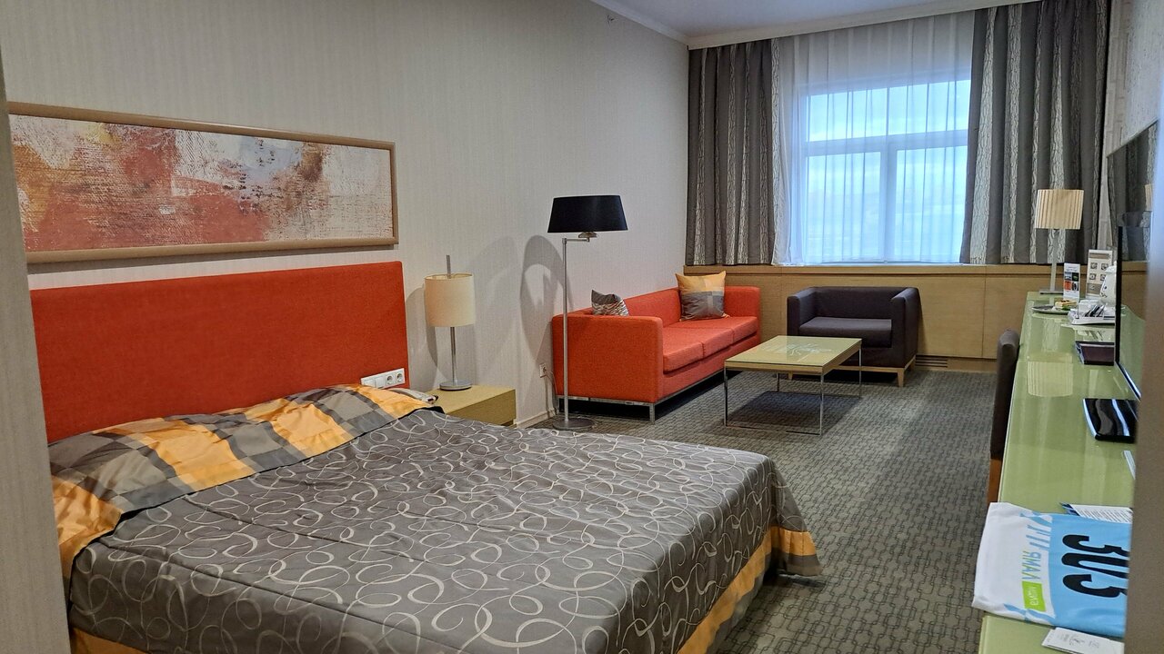 Очень хорошая гостиница. Номера отличные, ресторан с хорошей едой. В номерах убирают каждый день, добавляют гигиенические принадлежности ежедневно, в номере есть вода, чай, кофе, тапочки, халат. Прекрасный вид из окна.