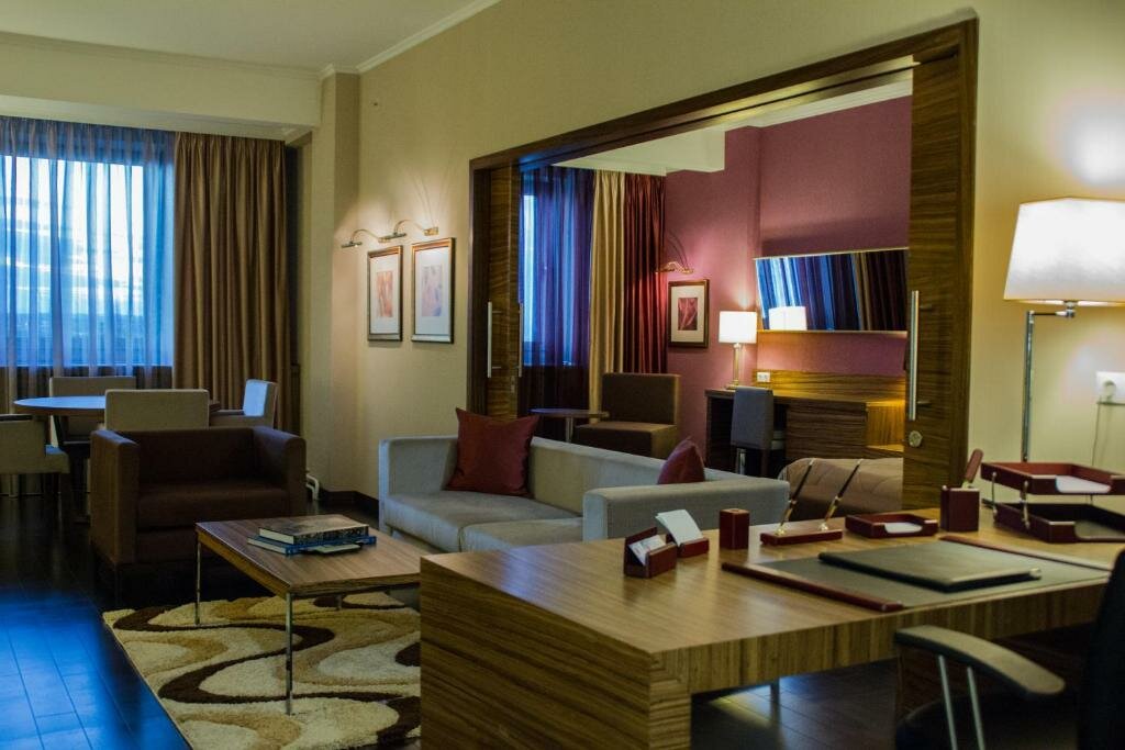 Гости могут воспользоваться рестораном, кафе, баром, сауной, джакузи, тренажёрным залом и салоном красоты. Для деловых поездок доступны бизнес-центр, конференц-зал и банкетные услуги.