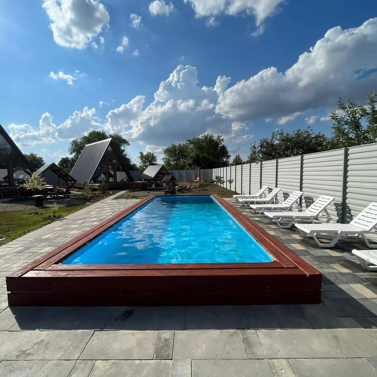 Место шикарное! Красивые отдельные домики, где есть всё необходимое для прекрасного отдыха компанией или семьёй с детьми. Сделано и обставлено всё с умом и с душой, всё новое. В домике кондиционер, телевизор, вай фай роутер, колонка. Во дворе у каждого домика беседка с мангальной зоной, кресла-шезлонги. На красивой ухоженной территории подогреваемый бассейн с подсветкой. Дети сказали, можно и на море не ехать, тут прекрасно отдохнуть! Стоит его посетить совершенно точно!