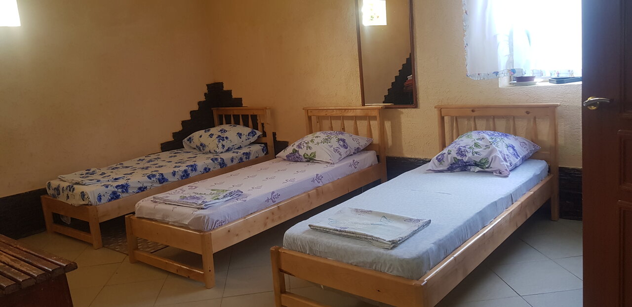 Позвонили заказали номер на 2 человек переночевать. Номер на 2 этаже, есть душ туалет, чайник, телевизор, холодильник. Переночевали за 2 тыс. По дороге на море неплохой вариант.