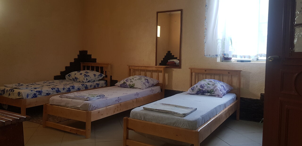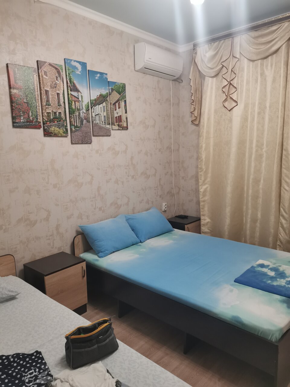 Заехали на 3 ночи командой детей 16 человек. Организатор предложил этот вариант. Поменять не получилось, так как другие гостиницы были заняты. 4 номера на первом этаже ещё как-то оборудованы мебелью. Даже чайник был в одном номере. На 2 этаже только вешалки. Вещи разложить просто некуда. Отопление постоянно не работало, выключалось. Заезжали в холодный номер. Звукоизоляции нет. Тем более в кафе рядом банкеты идут до 24ч. Воду 0.5 не дали. Шампуни и тапочки просили. Положили, но не всем. Ручки в номерах поломаны. Двери не все закрываются. В том числе в туалете. Ночью надо звонить, чтобы открыли калитку. Хозяину всё сказал. Ссылается на цену 2200 с питанием. Хотя я сказал, что в Анапе в сентябре на турнире немного дороже 2770 и качество получше. Питание в целом хорошо. Один раз были пельмени и на обед сосиски( Раньше 9:00 не хотели нас кормить, а у нас игры в 9:30. Дали с собой завтрак. Неудобно.