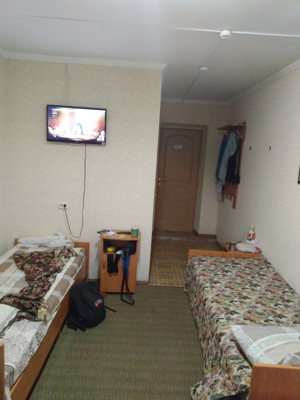 Хорошое место для ночлега. Цены советские как и атмосфера, очень уютно. На первом этаже магазин. Не поленитесь утром выпить там чашку кофе и пообщаться с женщиной продавцом!!!