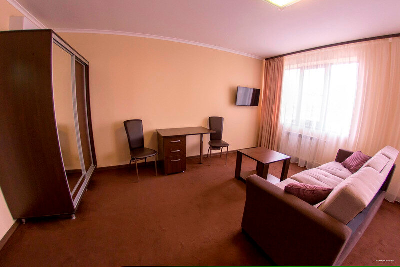 уютный большой номер с двумя раздельными кроватями , холодильником, телевизором и просторным санузлом. В номере имеются прикроватные тумбы, письменный стол, гардероб, журнальный столик и диван. В номере возможно трёхместное размещение (диван).