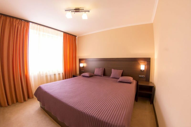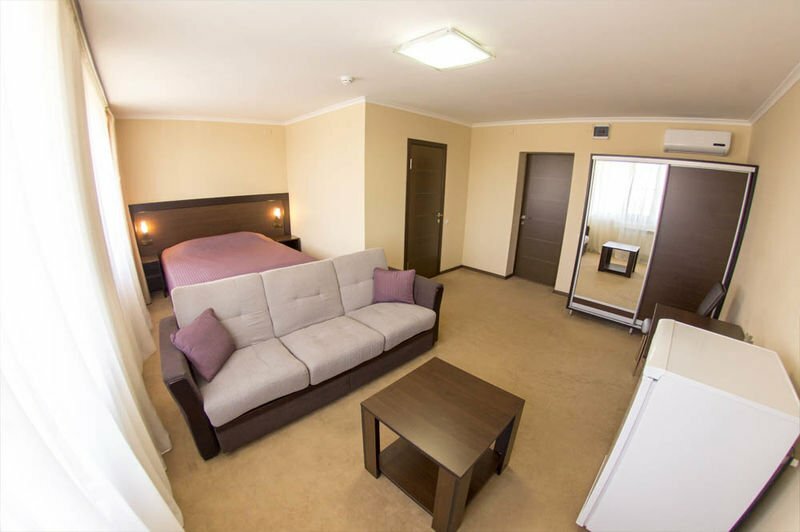 уютный двухкомнатный номер с кроватью размера 'king size' , холодильником, телевизором и просторным санузлом. В номере имеются прикроватные тумбы, письменный стол, гардероб и диван. В номере возможно трёхместное размещение (диван).