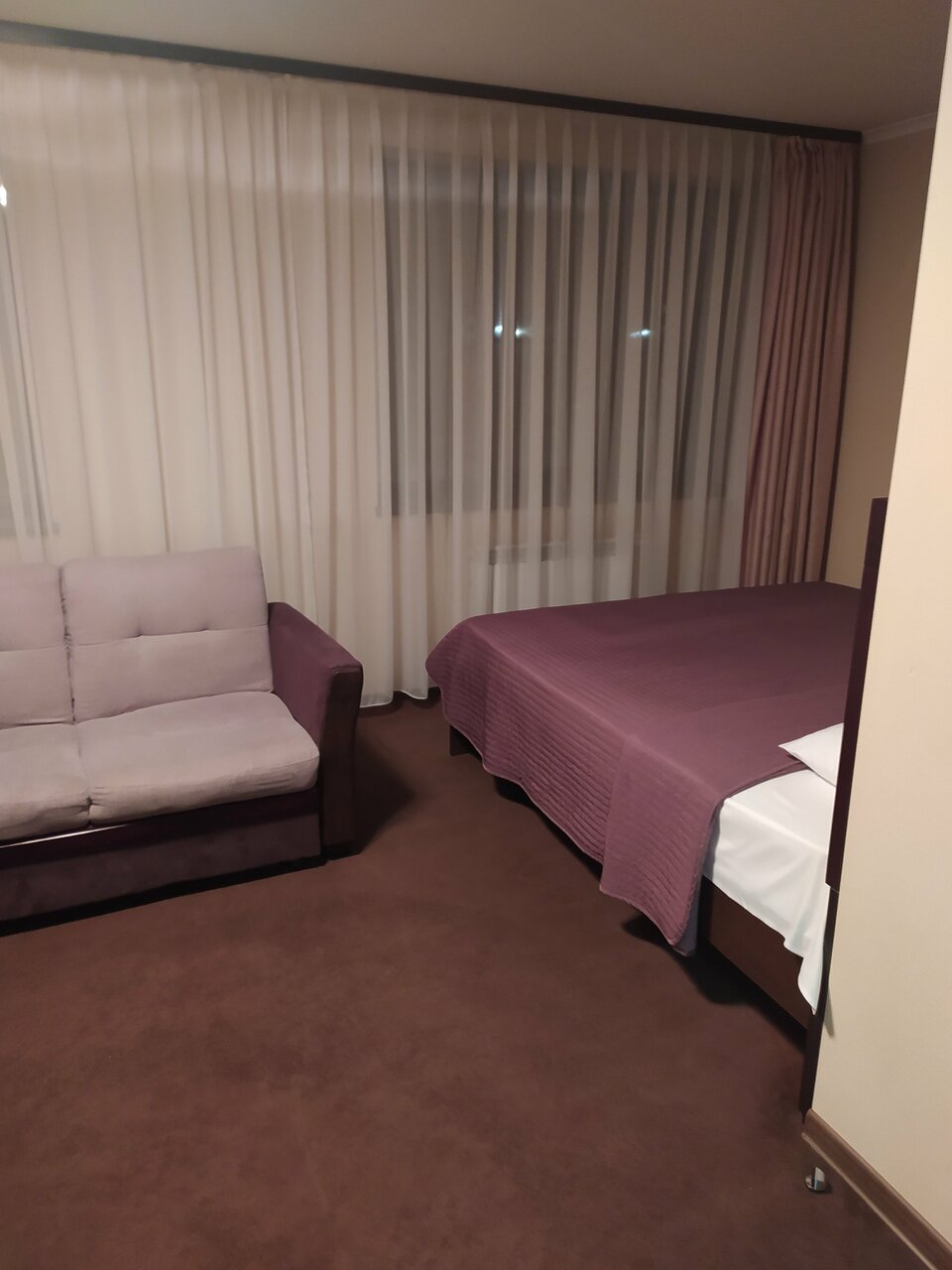 Снимал двухместный номер с большой кроватью. Номер маленький, подушки высокие и не удобные , телевизор висит не напротив кровати а сбоку, вообще какой то маразм( первый раз такое встречаю). Кафе начинает работать в 7.30 , что тоже крайне неудобно если выезжаешь до пол восьмого, Завтрак на тройку. Вообщем не рекомендую.