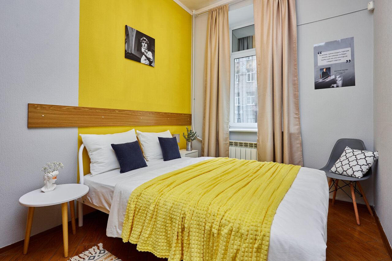 В отеле представлено 2 номера категории ' Комфорт' со стильным, ярким дизайном и индивидуальными названиями 'Давид' и 'Рената Литвинова'. Данный двухместный номер порадует гостей ортопедическим матрасом, шторами блэкаут и натуральным хлопковым бельем