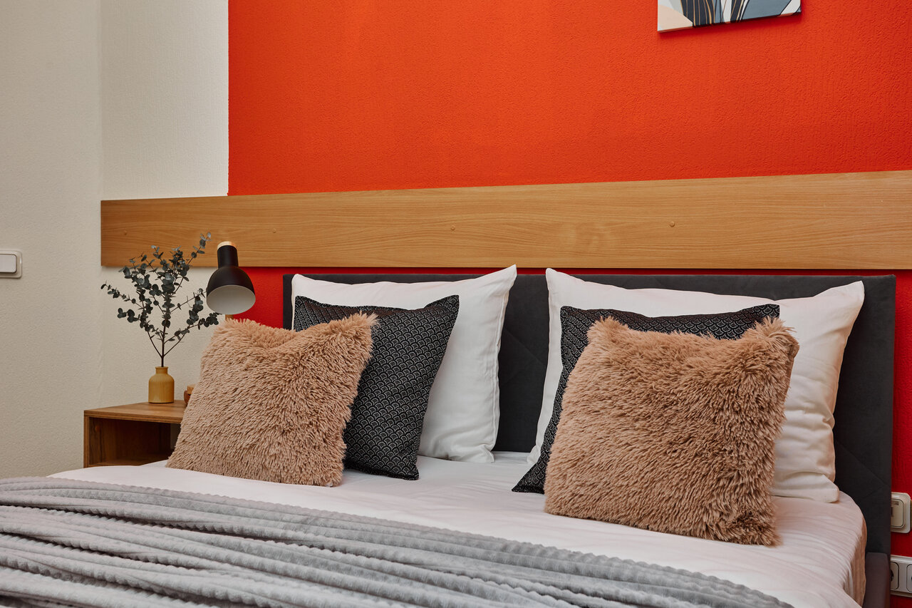 Светлый двухместный номер категории стандарт порадует гостей ортопедическим матрасом, шторами блэкаут и натуральным хлопковым постельным бельем. В номере есть места для хранения вещей, фен.