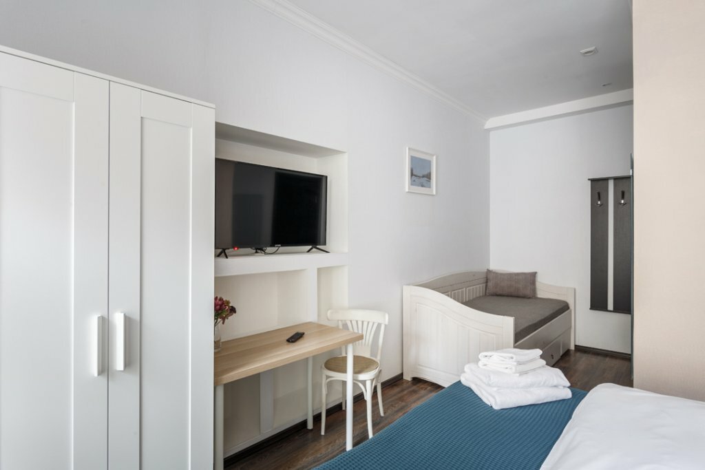 В номере остались вещи прошлых жильцов. Вечером помыться было практически невозможно — вода еле тёплая (по крайней мере, в нашей комнате). Шумоизоляция отсутствует. Кровать узковата для двуспальной + постельное бельё было не очень качественно отстирано. Оставались всего на одну ночь, так что недочёты были терпимы, но для многодневного проживания не рекомендую. Из плюсов могу отметить удобное местоположение (центр, рядом есть несколько магазинов, кафе, большинство достопримечательностей в пешей доступности).