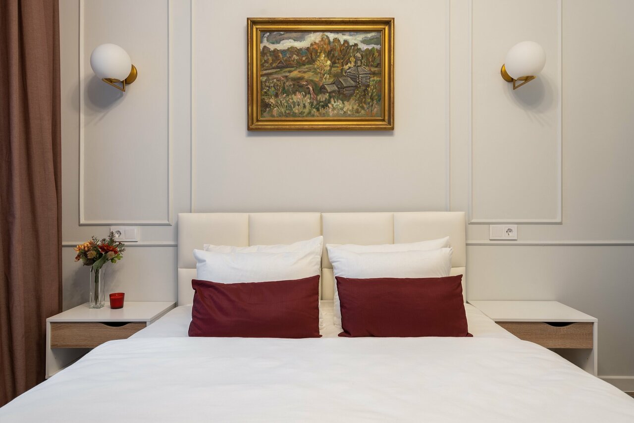 Красивый и уютный отель в 10 минутах от метро, в красивом районе (Певческий, 5) По нашему адресу было всего несколько комнат, поэтому у меня было ощущение, что живу одна, это класс! Фотографии холла и наших номеров полностью соответствуют, там действительно так уютно. Номера со всеми удобствами Отдельное спасибо за стиральную машину с порошком , сушилку и утюг Не хватило кондиционера в одном из номеров и штопора, но я думаю, что это зависит от уровня номера Номера чистые и красивые, было приятно в них находится Стоит отметить, что администрация отеля регулярно интересовалась комфортно ли нам, есть ли какие то проблемы, в конце пребывания просит обратную связь, это всегда очень приятно Спасибо за комфортный отдых