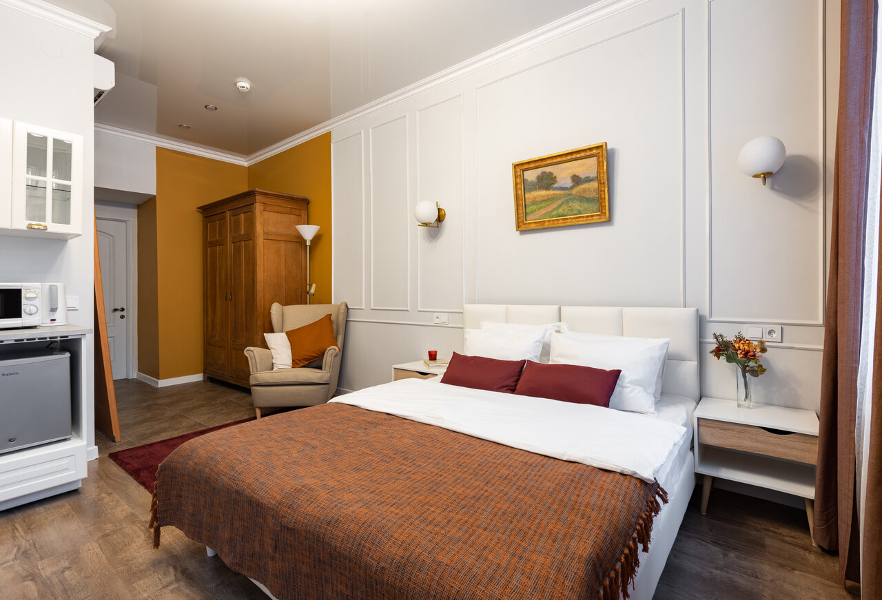 - Наличие кухни и собственного санузла в номере