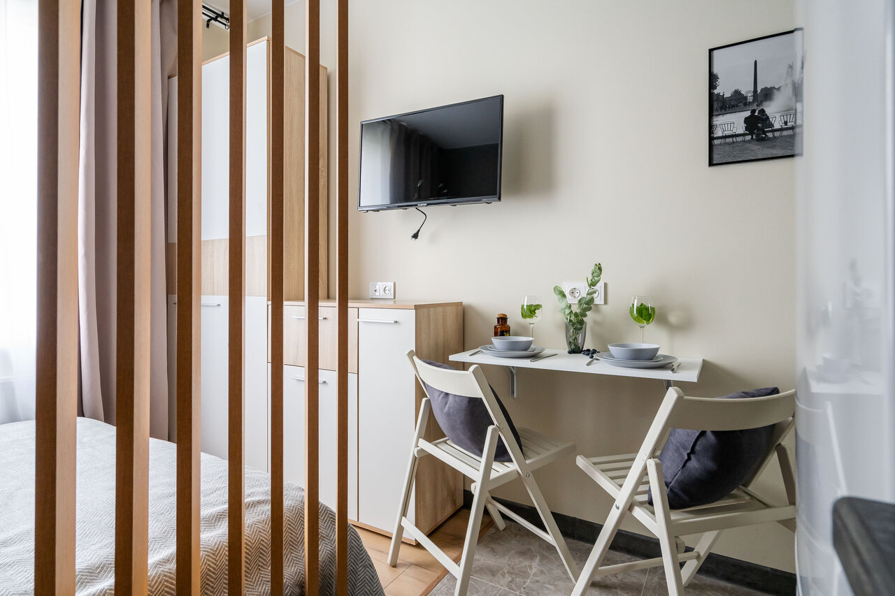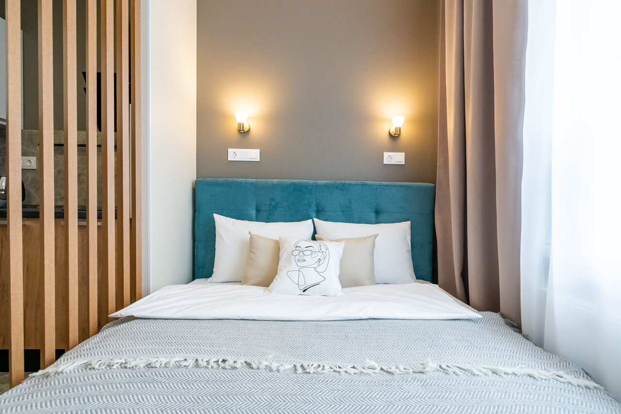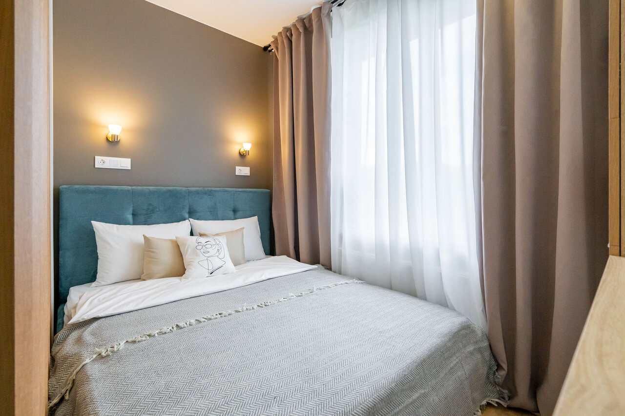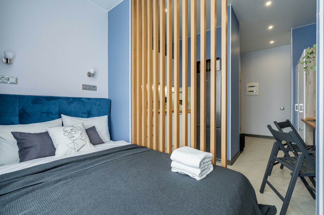 Удобный приятный небольшой номер. Есть все необходимое. 10 мин до м. Старая Деревня. Единственное что обратило на себя внимание грязное покрывало на кровати с обратной стороны (апп-ты ‘Небесная лазурь’).