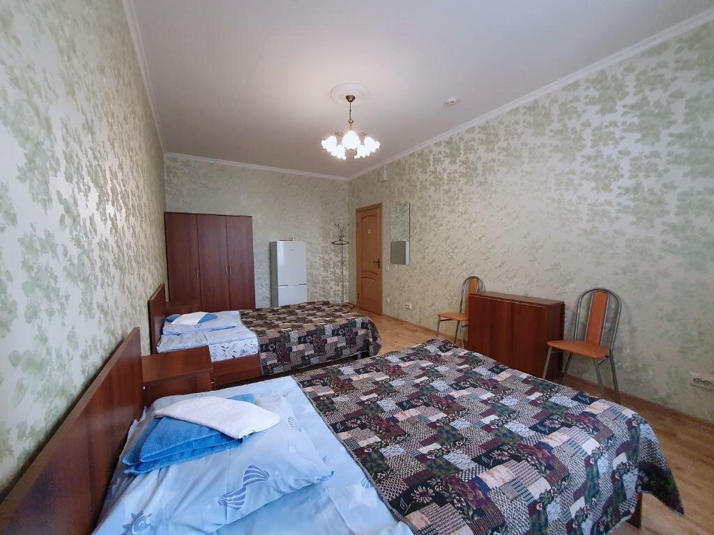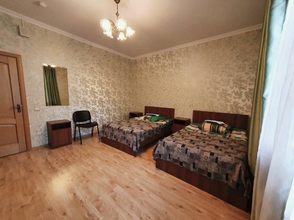 2 кровати, холодильник, ТВ, обеденная зона.Одноместное размещение - 1200 руб, доп.место – 600 руб.