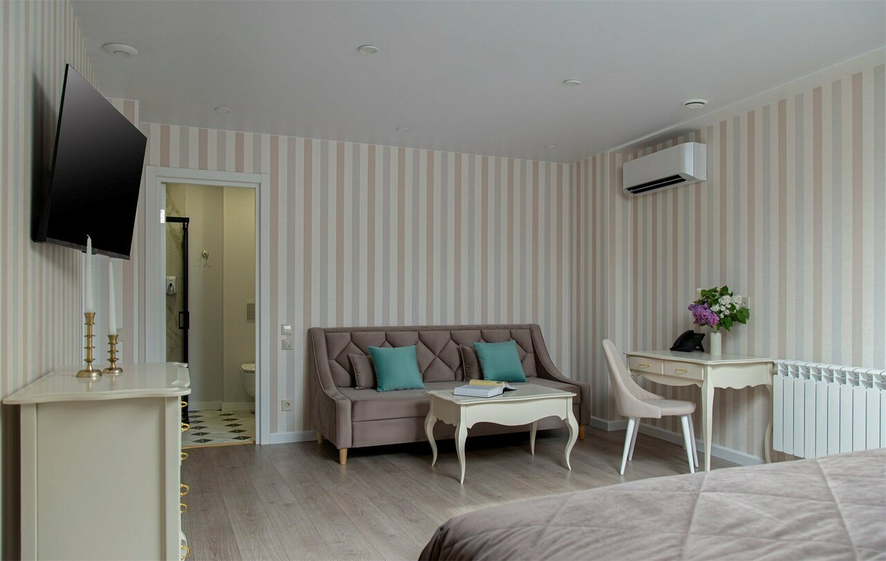 Очень крутой и просторный номер на Галерной 61 !!! В нашем распорчдении была огромная ванная комната , гостевая и спальня ! Удобное расположение отеля , в номере все чисто и стильно ! Настоящий питерский отдых