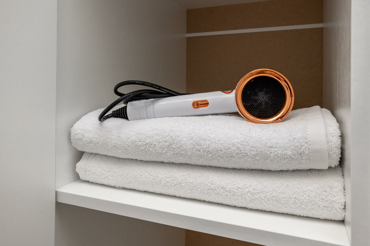 - Полный набор необходимой техники (холодильник, плита, чайник, фен и т. д.).