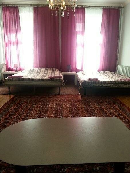 В самом центре, всюду пешком можно дойти, поверьте это дорогого стоит! Не дорого, очень чисто и уютно, по-домашнему, ванна, душ и два туалета общие, но всем хватает. 5 номеров, кажется, всего. Комната на четверых была огромная с двумя окнами на улицу, очень теплая, на полу ковер во всю комнату, стол и 6 стульев, стойка для вещей и интерьерный камод, две двуспальные кровати и три дивана! И еще куча свободного места. Забыла еще прикроватные тумбочки штуки три и камод под телевизор. На кухне кулер, чай, кофе. Есть холодильник. Всем рекомендую.
