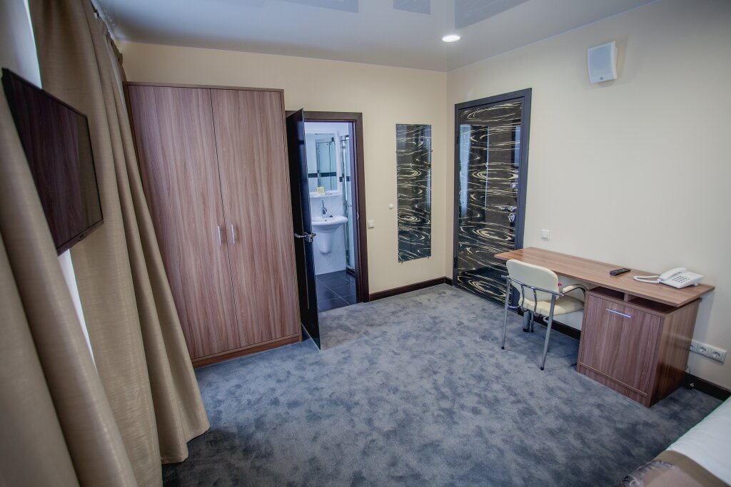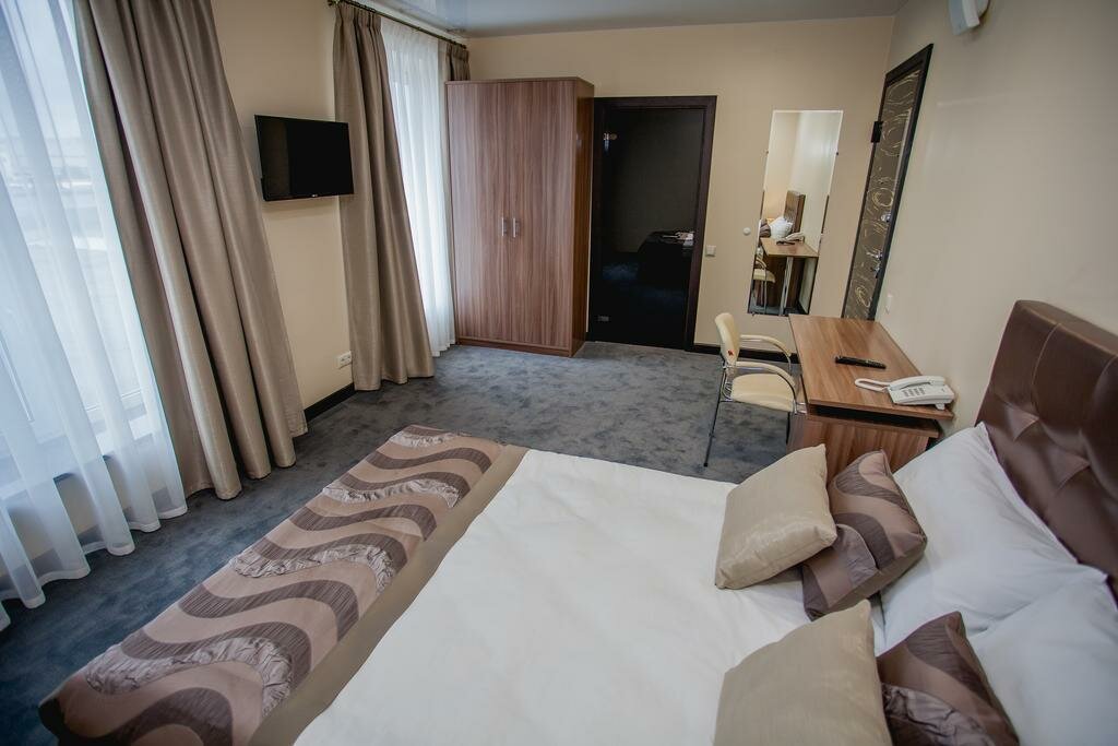 Уютный номер «Стандарт», выполненный в стильных пастельных оттенках, станет практичным решением для комфортного отдыха одного или двух гостей. Здесь вы сможете набраться сил перед деловой встречей или же расслабиться после прогулки по городу.