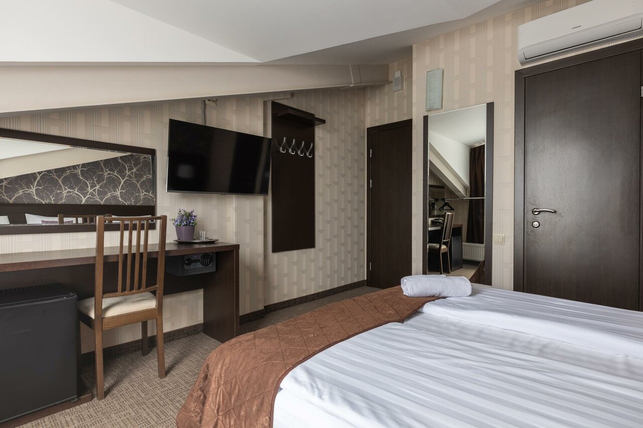 Тихое уютное место, очень приветливый персонал. Из минусов, могу назвать отсутствие лифта, заселили на 5 этаж, после прогулок по городу, когда приходишь без ног, такое себе удовольствие потом еще взбираться к себе в номер. Завтрак на твердую 3, без изысков но голодным не останешься. Сам номер был очень маленький. Гладильная доска на этаже, но это терпимо.