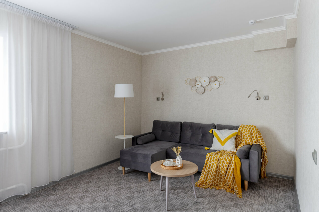 Номер категории Бизнес двухкомнатный оформлен в стиле Сканди. Прекрасно подойдет для семейного отдыха, а также для гостей, приезжающие в Санкт-Петербург по бизнесу. Номер состоит из уютной гостиной и просторной спальни. Площадь 44м2.