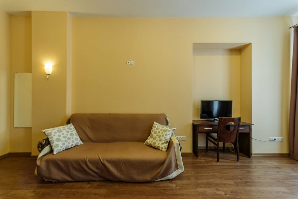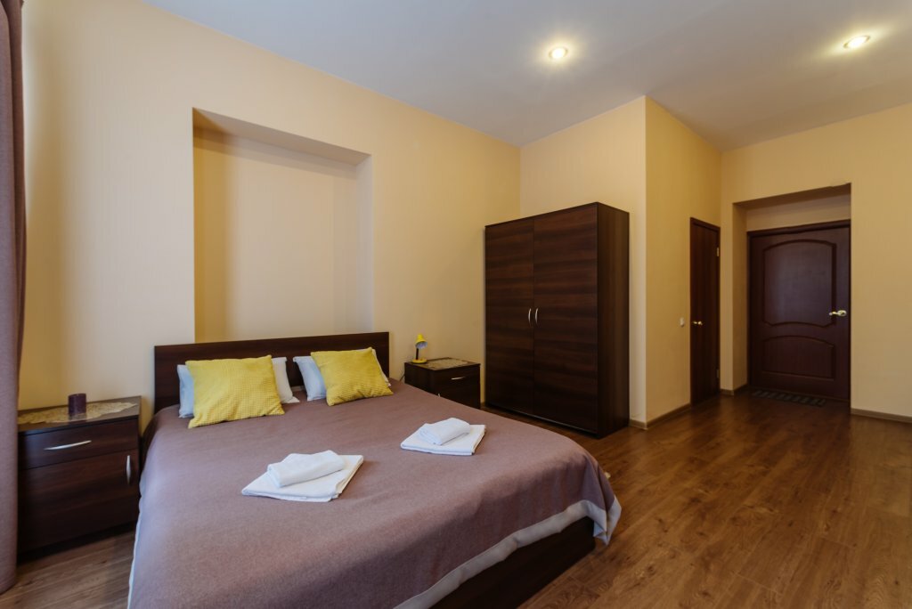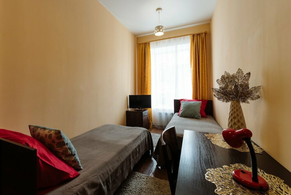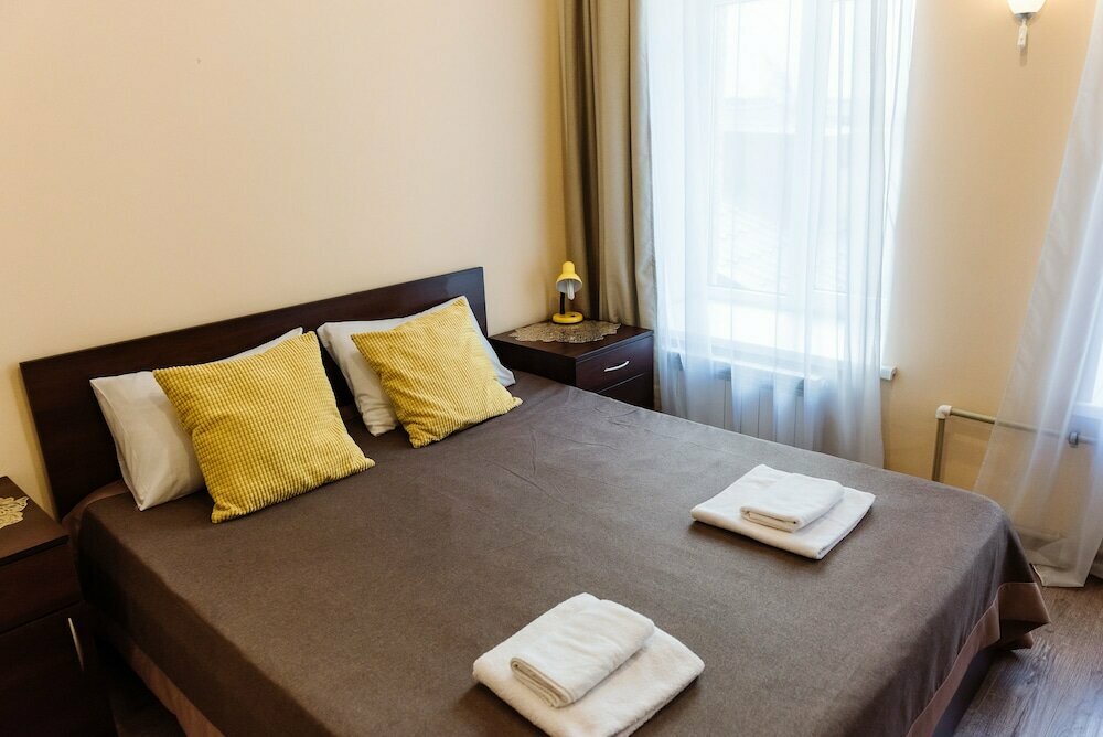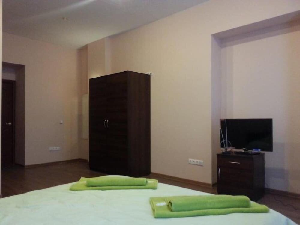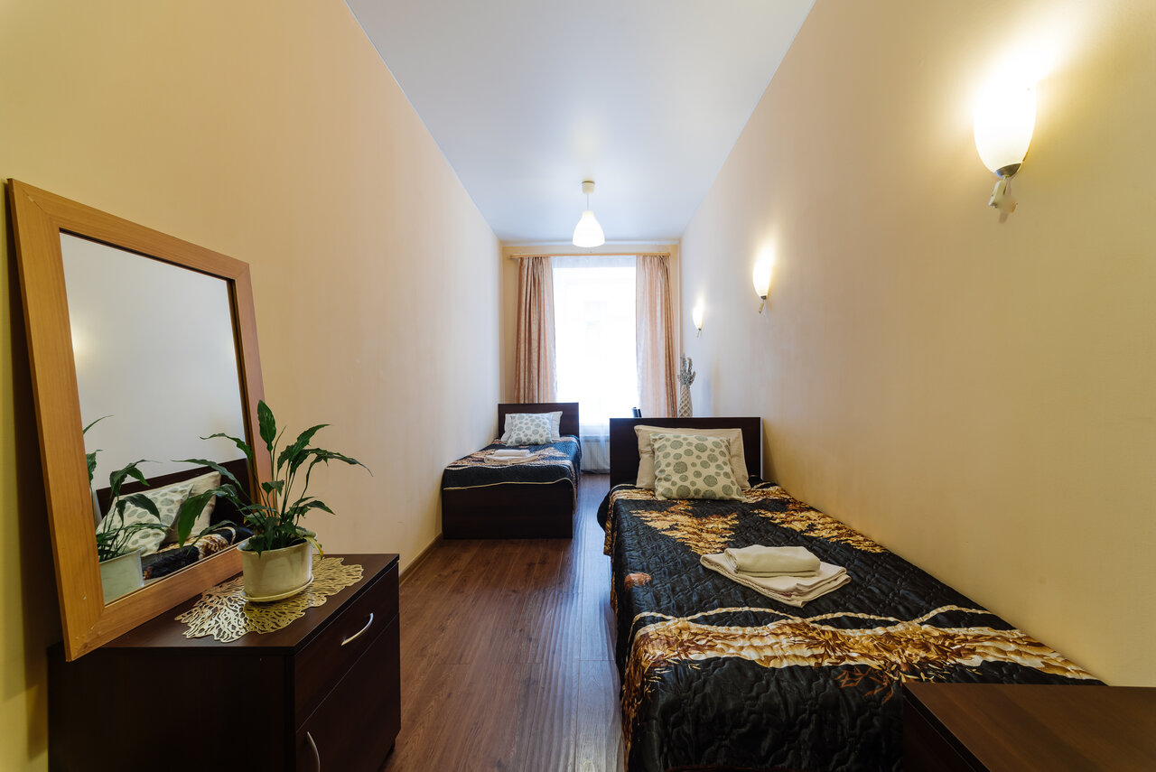 Хуже не бывает. Не отель, а хостел. Комната узкая, неудобная. Лампа далеко от кровати, надо вставать. Мебель старая, обгрызенная, матрасы продавленные и из них выпирают пружины, скрипят при малейшем движении. Полотенца старые, грубые, плохо выстиранные, серые, с пятнами. Санузел далеко, ночью встать и найти проблема. Посуда старая, облупленная, из неё есть противно, перешли на одноразовую. Когда вернулись в Москву, то при распаковке вещей обнаружилось, что привезли с собой таракана!… Никому не советую здесь селиться, даже несмотря на отличное расположение у Медного всадника.