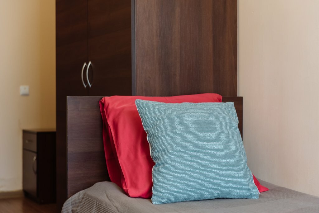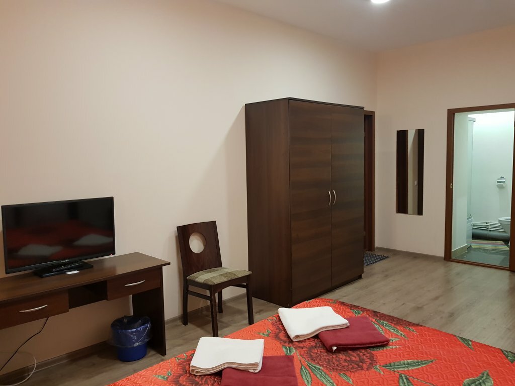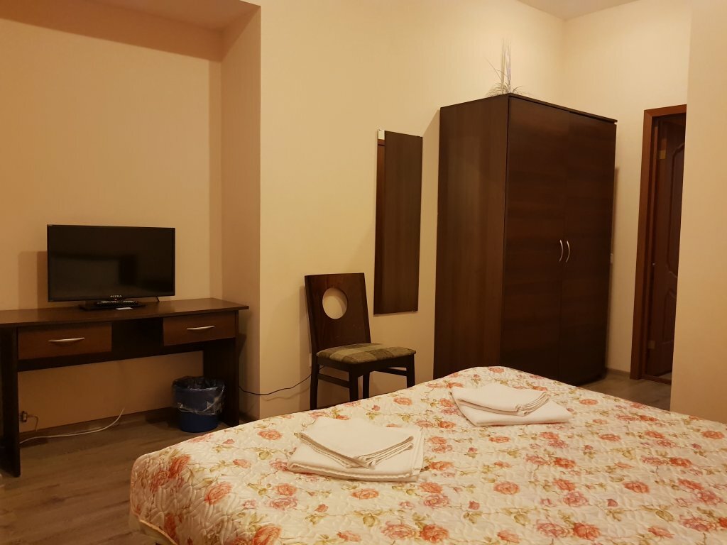 Это не отель а общежитие. В комнате на двоих одна табуретка, две тумбочки,две кровати и один шкаф. Все. Даже зеркала нет. Матрасы на пружинах ещё с советских времён. Любое движение вызывает такой скрип, что просыпаются все, даже соседи. Сан узла всего два на 10 н омеров. Единственное достоинство это отличный обслуживающий персонал и расположение.
