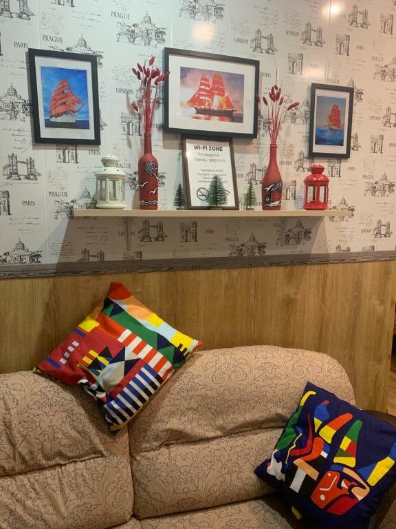 Все по домашнему. Привлекли фотки. В принципе все соответствует описанию . Отдельное СПАСИБО администратору Марии: все рассказала показала, и проводила в столовую. Миниотель находится в шаговой доступности от основных достопримечательностей. На улице много студентов . Все понравилось.