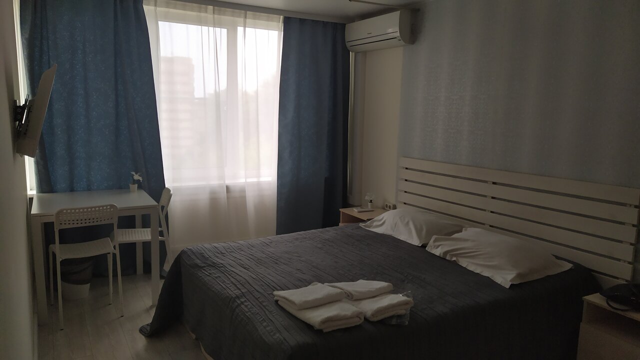 Это не Отель, это общежитие. Находится в жилом доме где парадную закрывает охранник на 1 этаже на ключ с 1 до 5 утра, не пробовали есть ли проблемы попасть в этот промежуток в Отель, но не удобно это явно. При бронировании, даже не предупреждают при плановом отключении горячей воды, что ее нет. И предлагают всем ходить принимать душ в 2 номера где есть боллер. Кондиционер течёт, пользоваться не возможно. Диван в номере продавлен так, что даже накидка на нем не спасает его вид искареженности. Телевизор живет своей жизнью, сам переключат каналы, диапазоны или вообще может выключится. На ресепшене всегда темень и женщина то ли всегда спит, но вид у неё такой и застать на месте не возможно, только вызвать по телефону. Не советую никому здесь заселятся!