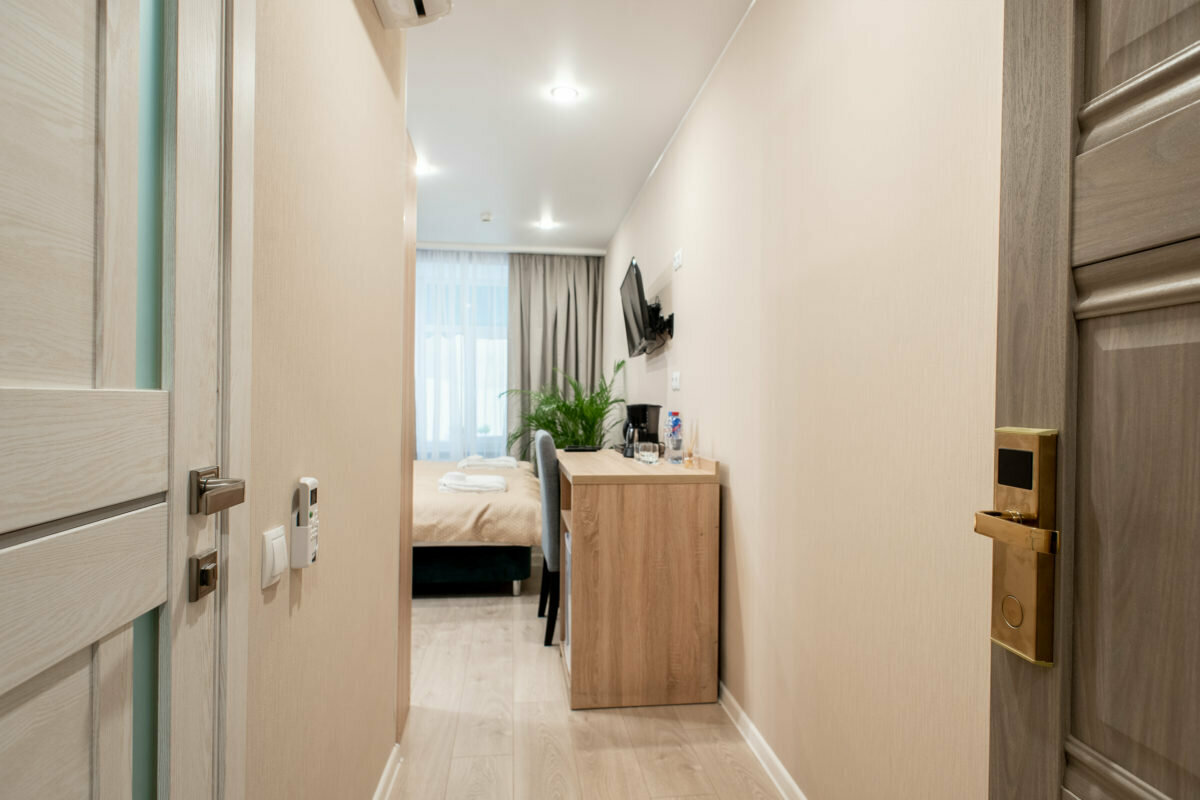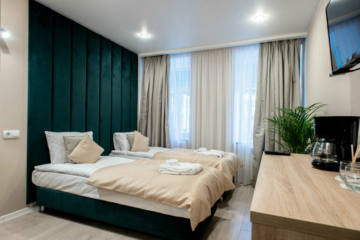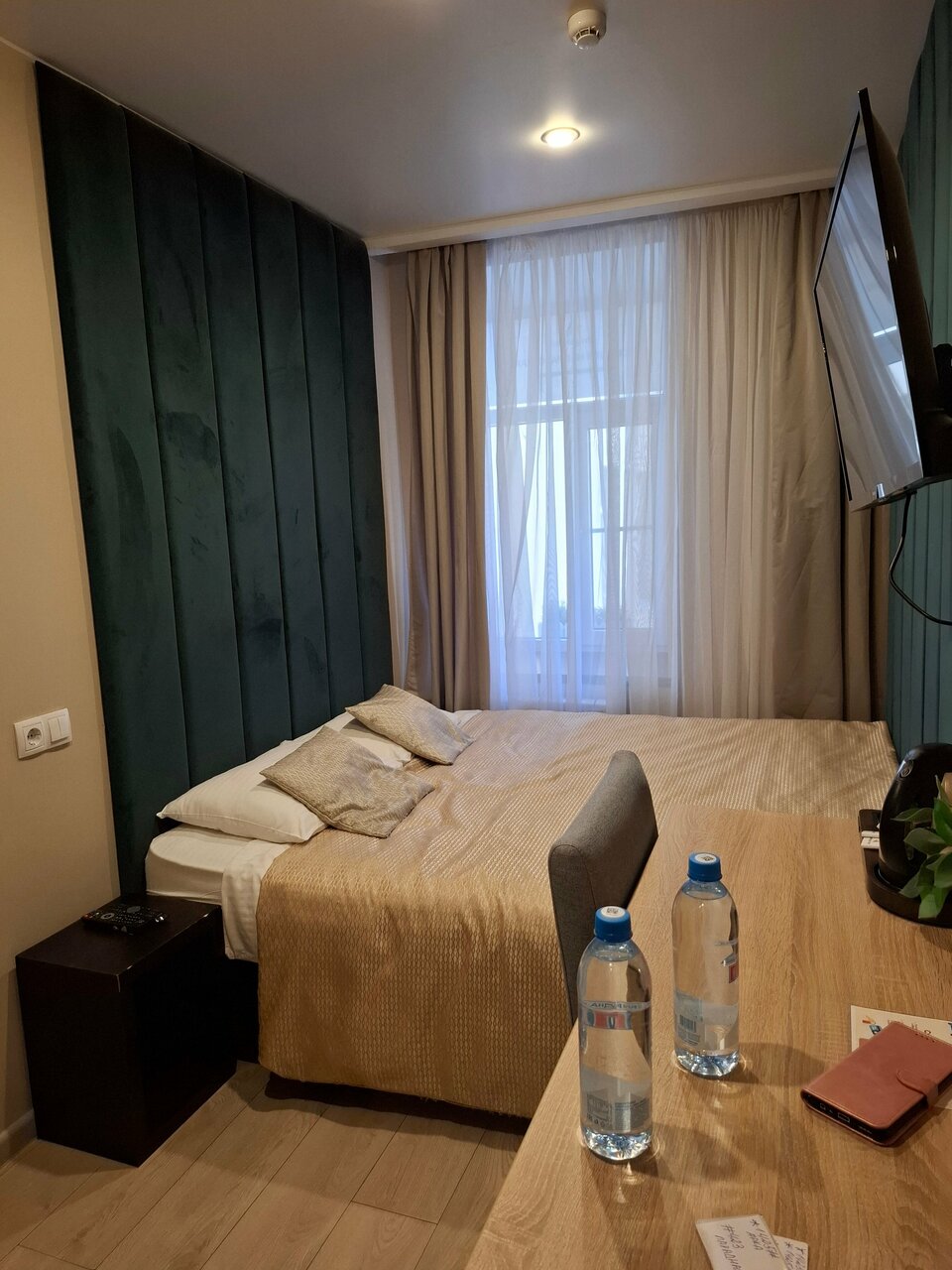 Останавливались в данном отеле с женой на выходные (9 мая), нам очень понравилось. Номер у нас был тот, что на фото, он не большой, но очень уютный. К чистоте вообще нет никаких претензий. Персонал приветливый и внимательный. Отель находится недалеко от Казанского, и до большинства достопримечательностей можно дойти пешком.