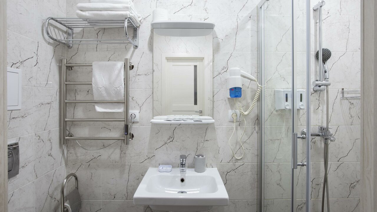 Отель очень подследственный, совершенно не стоит своих денег. Пол ледяной, особенно в ванной, даже сквозь носки и тапочки холодит ноги, с сантехникой проблемы, периодически окатывает кипятком или ледяной водой. Номер был на первом этаже, окна во двор, прямо на входную лестницу, так что даже окна не открыть, жить только за шторами. Дали номер прямо у входа, так что когда кто-то заходил или выходил, отлично было все слышно. Единственное что хорошо — расположение