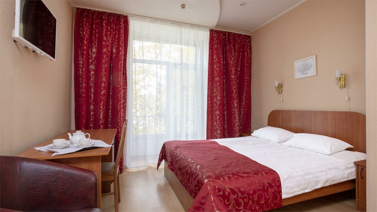Классический номер с двуспальной кроватью площадью 16-19 кв. м., собственной ванной комнатой с душем и видом во двор или на городской пейзаж.Такой номер подойдет и для отдыха и для деловой поездки.