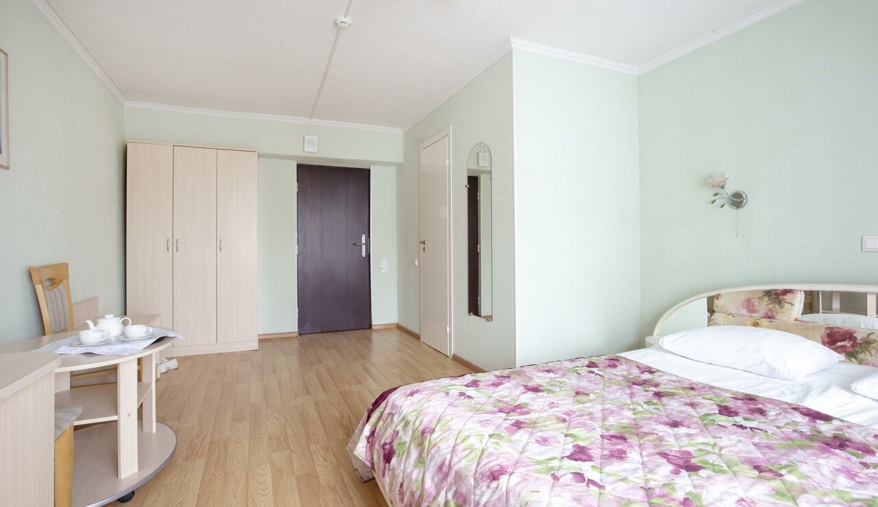 Однокомнатный номер с двумя кроватями площадью 17-20 кв. м., собственной ванной комнатой с душем и видом во двор или на городской пейзаж.Здесь будет удобно друзьям на отдыхе или коллегам в командировке.