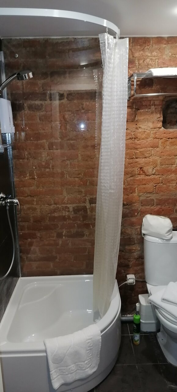 Место в целом понравилось — хорошая локация, гости не мешают друг другу, возможность размещения для 3-х человек. Не понравилось: Тесный душ в номере — взрослому человеку сложно поместиться; Как работает водонагреватель — либо кипяток, либо холодная вода. Несмотря на то, что в номере есть штора, но она не сильно помогает от уличного света и летом в номере всегда светло. В номере душно, а если ночью открыть окно, то шумно от улицы.