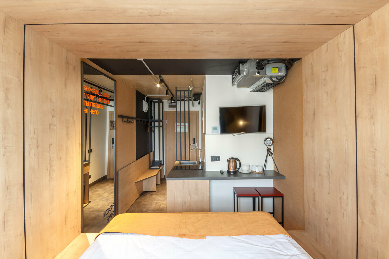- Наличие кухонной зоны (плита, чайник, холодильник, посуда).