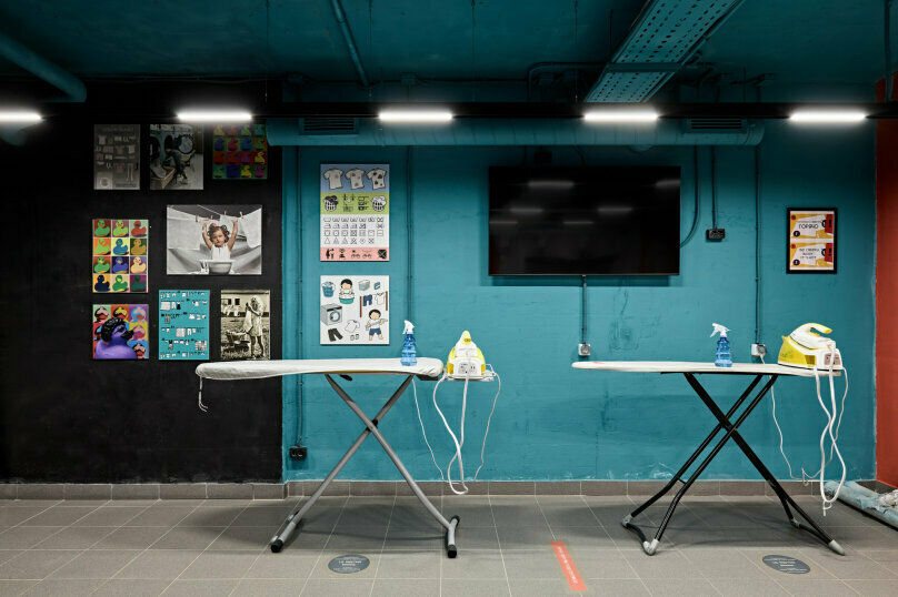 Для активных людей. Все самое необходимое, чтобы отдохнуть после прогулки по Питеру. А так же на первом этаже отличная зона для отдыха, просмотра фильмов. Ну и постирушки как в американских фильмах.