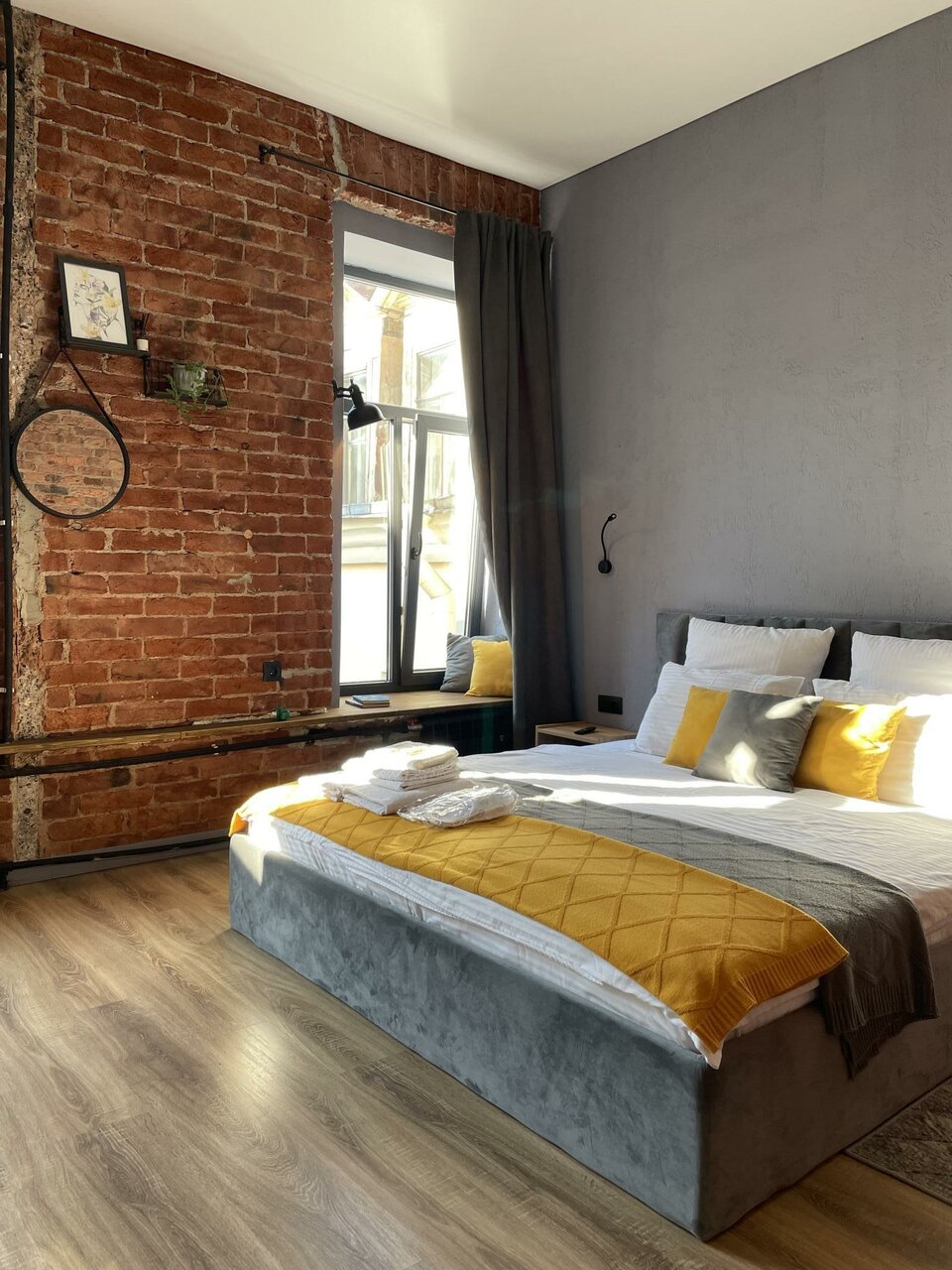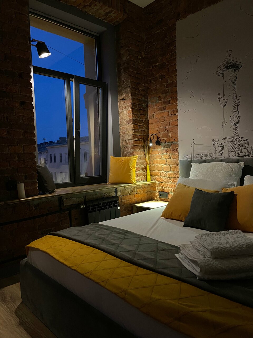Останавливались семьей, двое взрослых, двое детей. Номер в стиле лофт, уютный и чистый. Очень понравилась общая гостиная: столики, удобные стулья, СВЧ, стиральная машинка, кулер, посуда и бокалы). Красивый вид из окон на проспект и соседние дома. В доме, рядом с подъездом булочная с вкусной и недорогой выпечкой. Недалеко от дома можно найти бесплатные парковочные места. До многих достопримечательностей можно дойти пешком. Заселение происходит бесконтактно, всю подробную информацию получили заранее. На все вопросы, ребята реагируют быстро. Осталось приятное впечатление от общения. Отель рекомендую, в следующий раз остановимся обязательно там же!!!