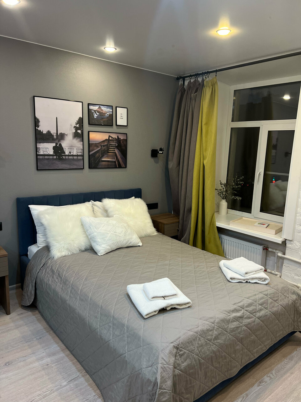 Всем добрый день! Останавливались в этом апарт-отеле с 11 по 12 апреля 2024 года, он очень удобно расположен, рядом с метро Спортивная, в настоящем старом Питерском доме с кирпичными стенами, окнами с широкими подоконниками. Номер небольшой, но есть всё для комфорта. Порадовало чистейшее постельное бельё, кровать с хорошим матрасом и новый диван-аккардеон. Отличный напор горячей воды в душе, тоже приятно! Небольшая кухонька со всем необходимым, набор икейской посуды в отличном состоянии. Обогреватель на случай холодов (нам не понадобился). Останавливаюсь у Михаила не первый раз, мне нравится, что всё четко, понятно, бесконтактное заселение. Спасибо большое за гостеприимство, обязательно приедем к Вам ещё!