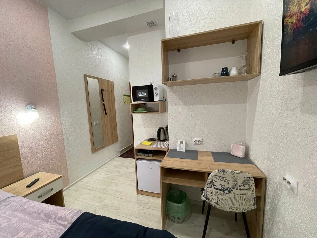 За такую скромную сумму за пребывание это лучший выбор, а главное все новое и чистое, в номере был холодильник, чайник, минимальный набор посуды на двоих, СВЧ печь, электрическая плита. Не особо нужно, но приятно что висит смарт телевизор. Удобное расположение. Есть также стиральная машина
