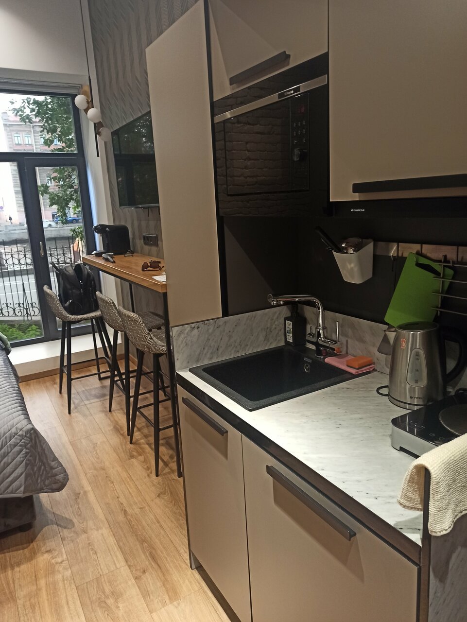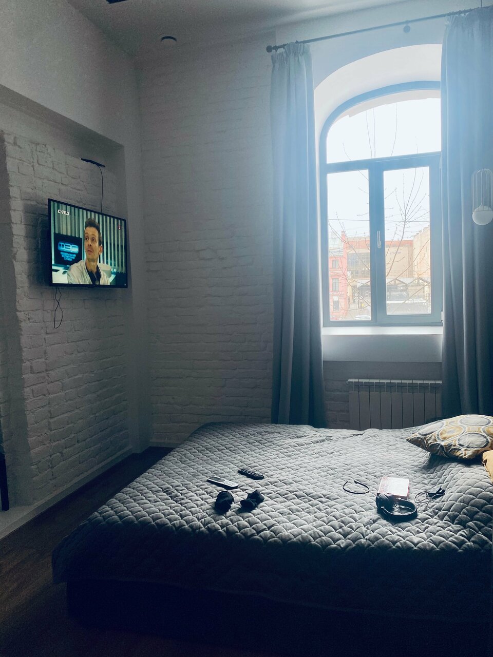 Отличные современные апартаменты. Со стильным и свежим ремонтом и видом из окна на реку Фонтанку.